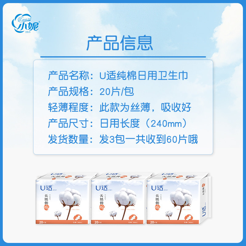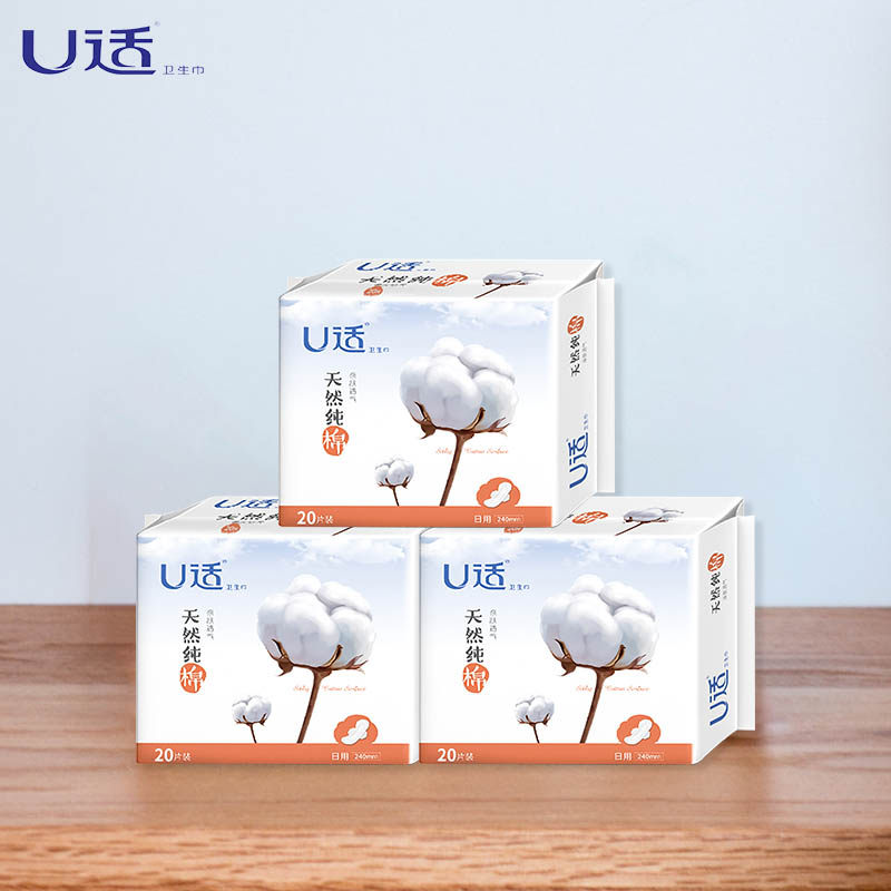 U Pure Cotton Taffon Daily 240mm ultra thin breathable wire soft aunt towel combination pack 3 packs 60 tablets
