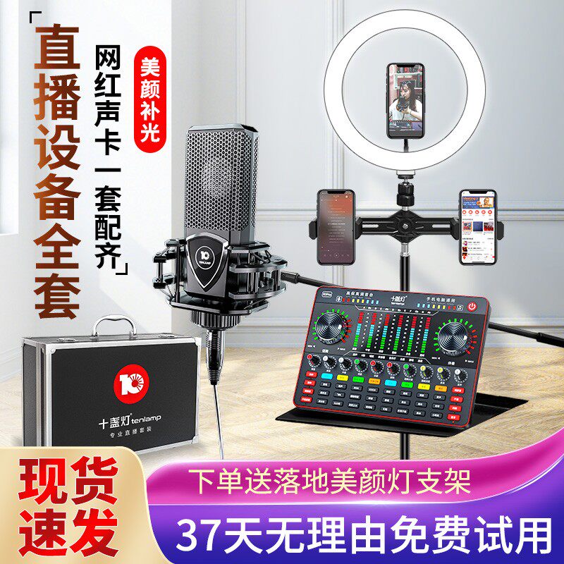 Ten lights Professional live broadcast equipment Full set of net red G3pro sound card singing mobile phone computer special desktop condenser microphone microphone integrated anchor equipment running tune suit with cargo artifact