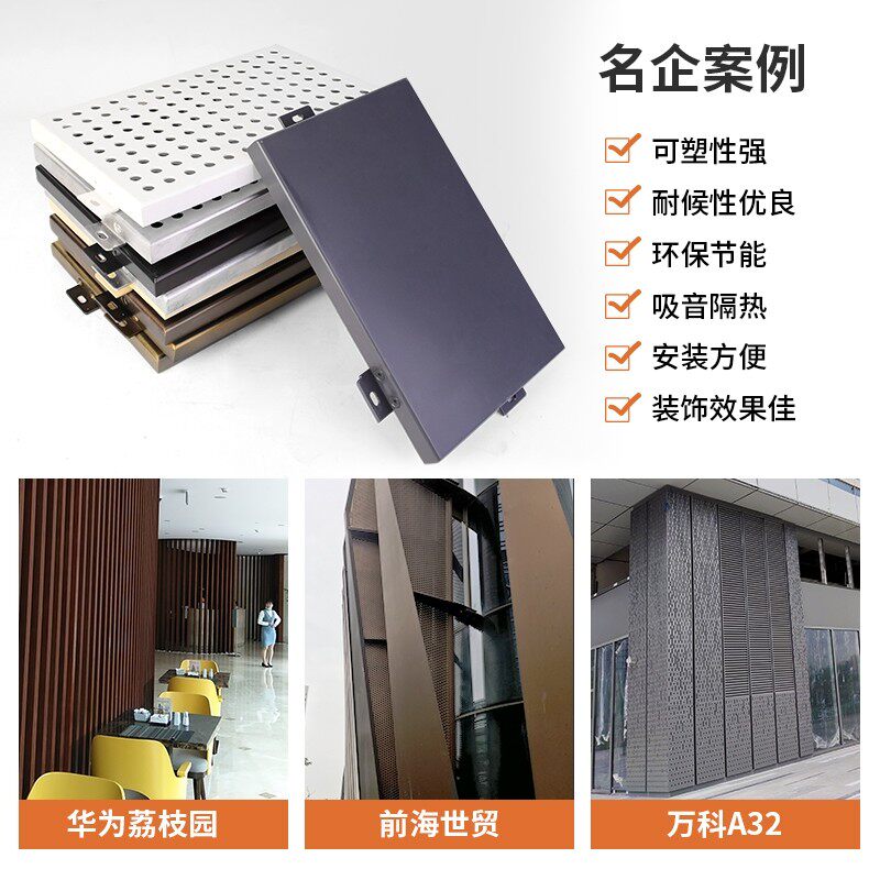 Aluminum veneer curtain wall custom fluorocarbon exterior wall door head aluminum plate canopy skeleton double curved clad column white punched aluminum veneer
