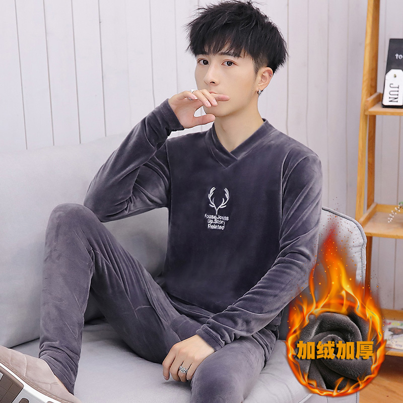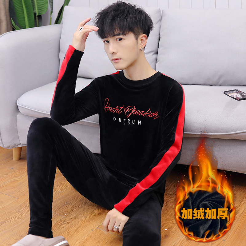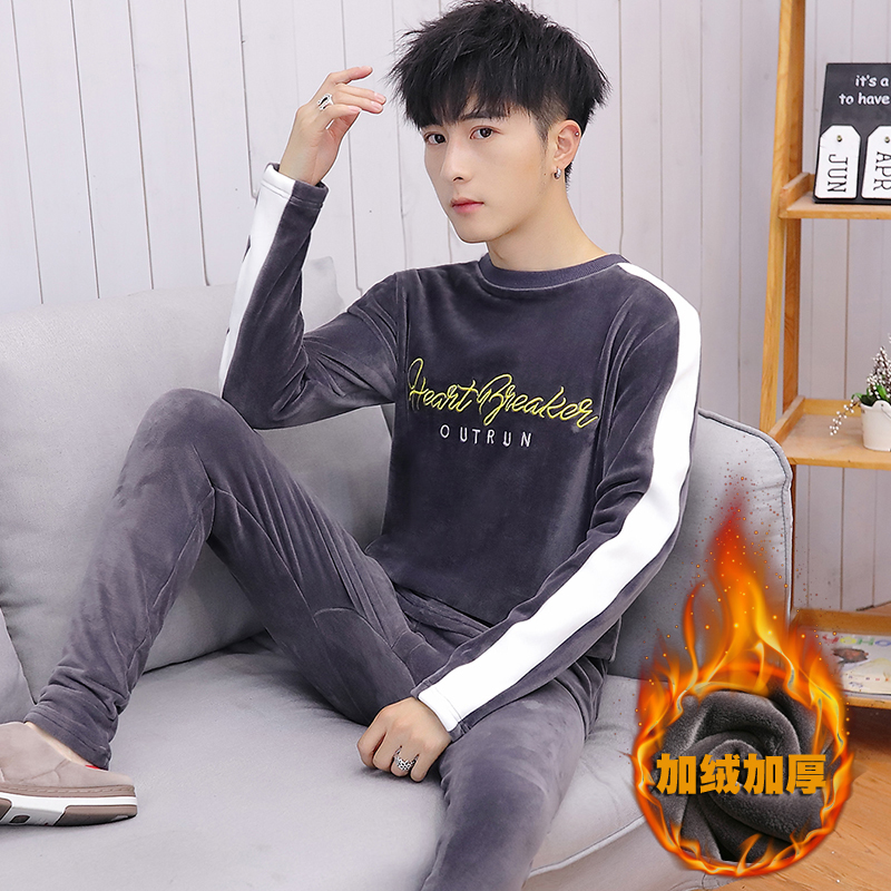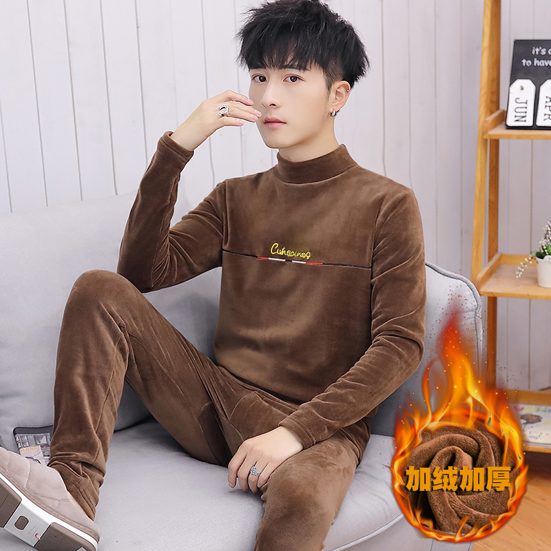 Heating clothes men's suit autumn and winter v-neck padded plus velvet youth golden velvet bottoming shirt men's autumn clothes sanitary pants