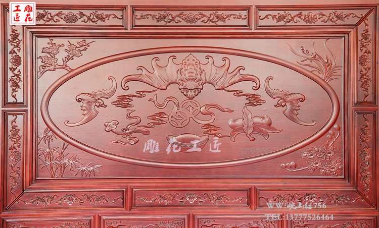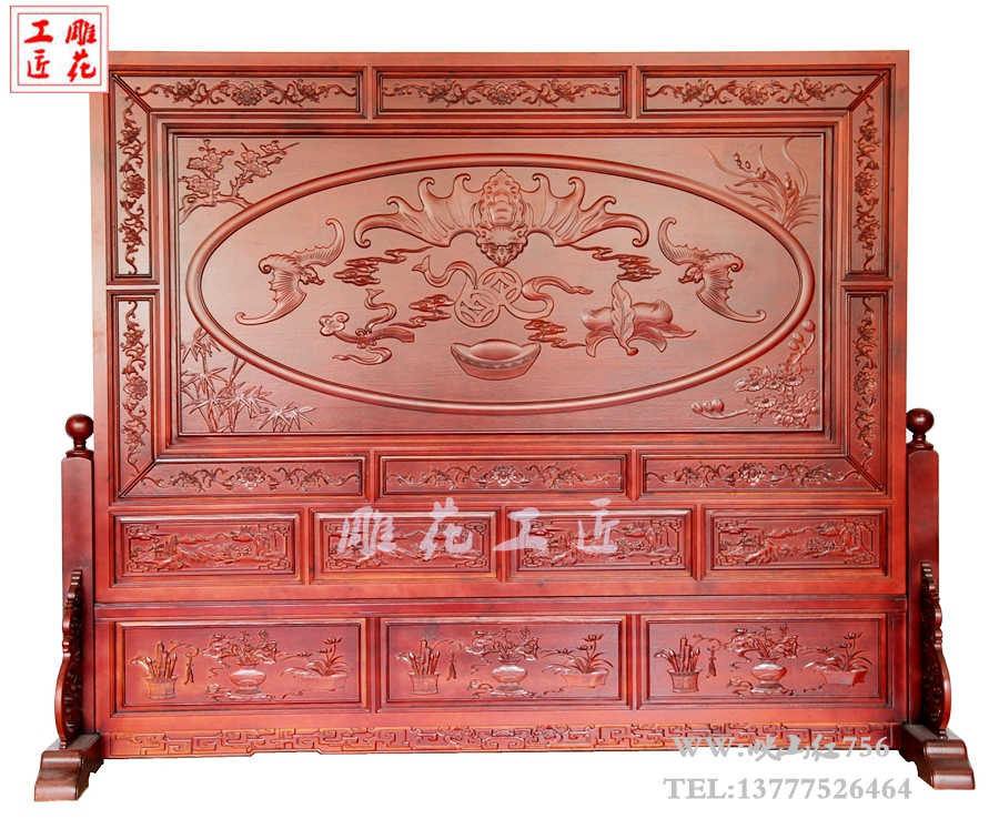 Dongyang wood carving solid wood screen living room lobby hotel large insert screen double-sided carved relief