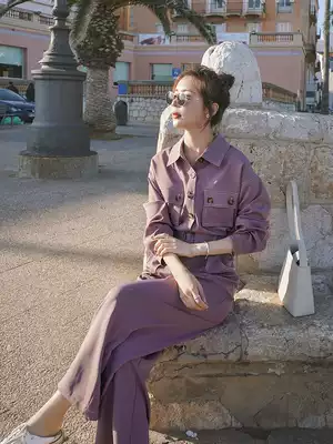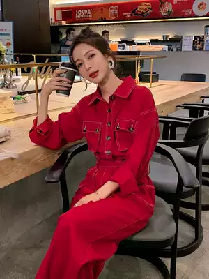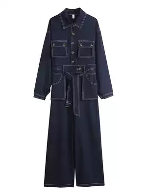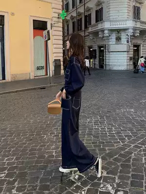 Lecea Alice denim women's 2021 Autumn New Korean version of foreign style overalls wide leg pants set