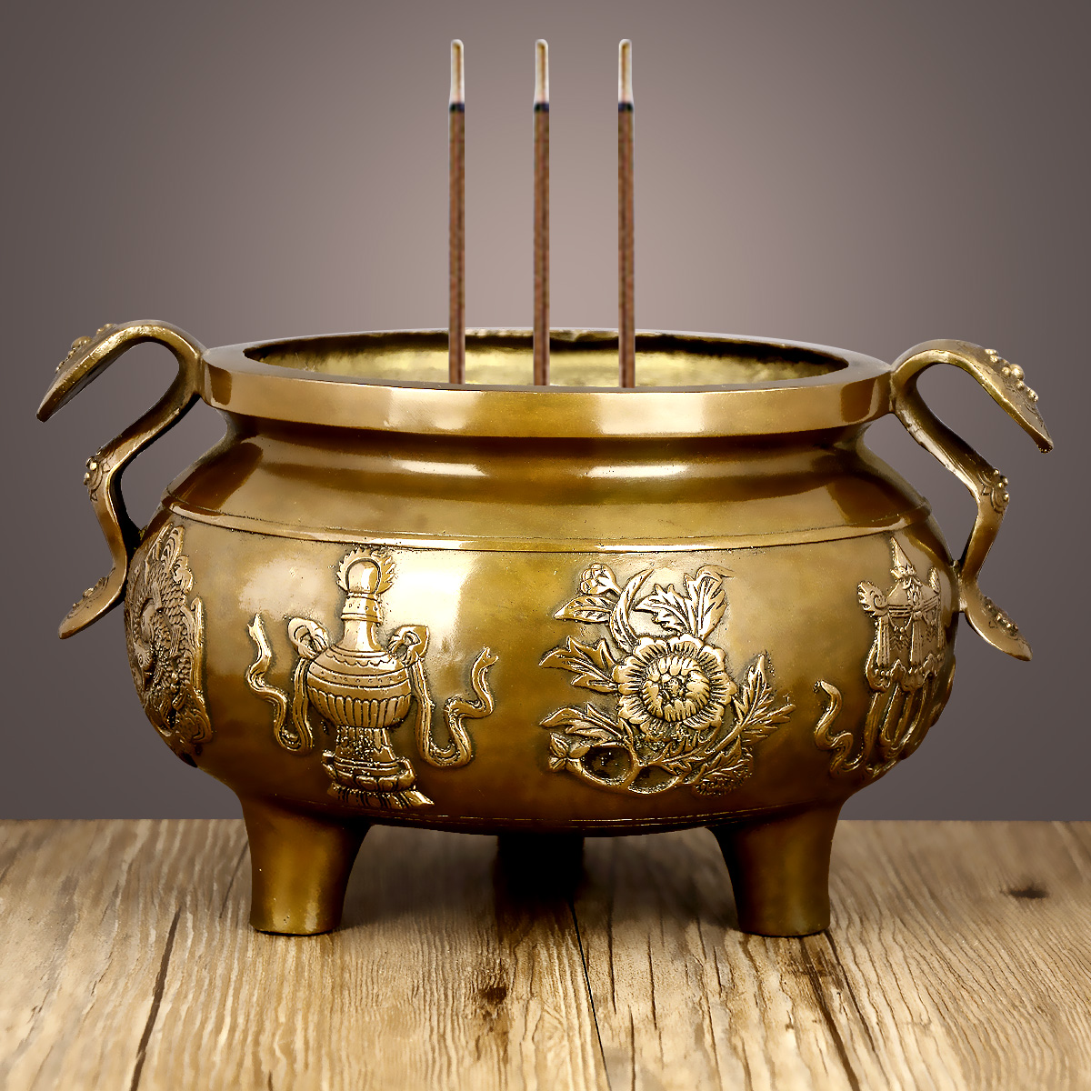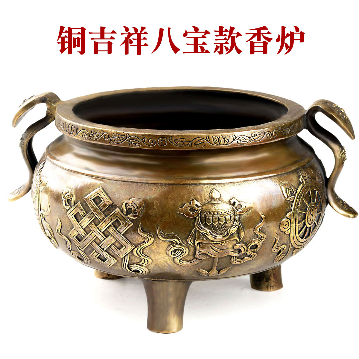 Feng Shui Pavilion Pure copper incense burner for Buddha to worship home interior ornaments Large Buddha tool antique eight treasure incense burner copper ding