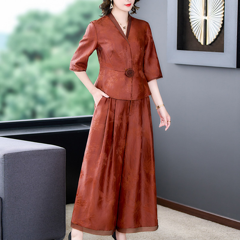 Mrs. Kuo's real silk two-piece set noble and foreign style summer female young mother mulberry silk suit high-end fashion big name