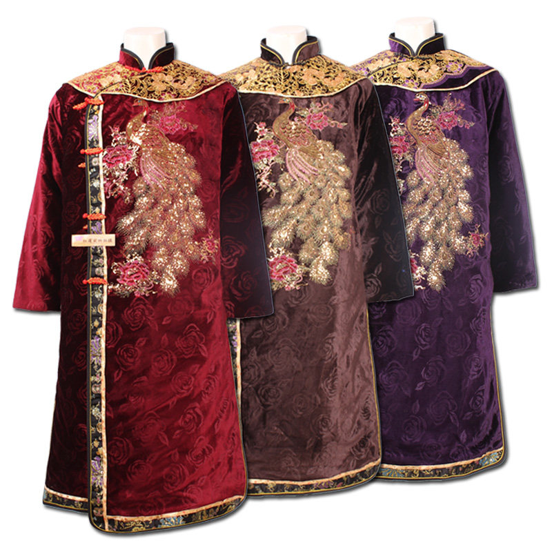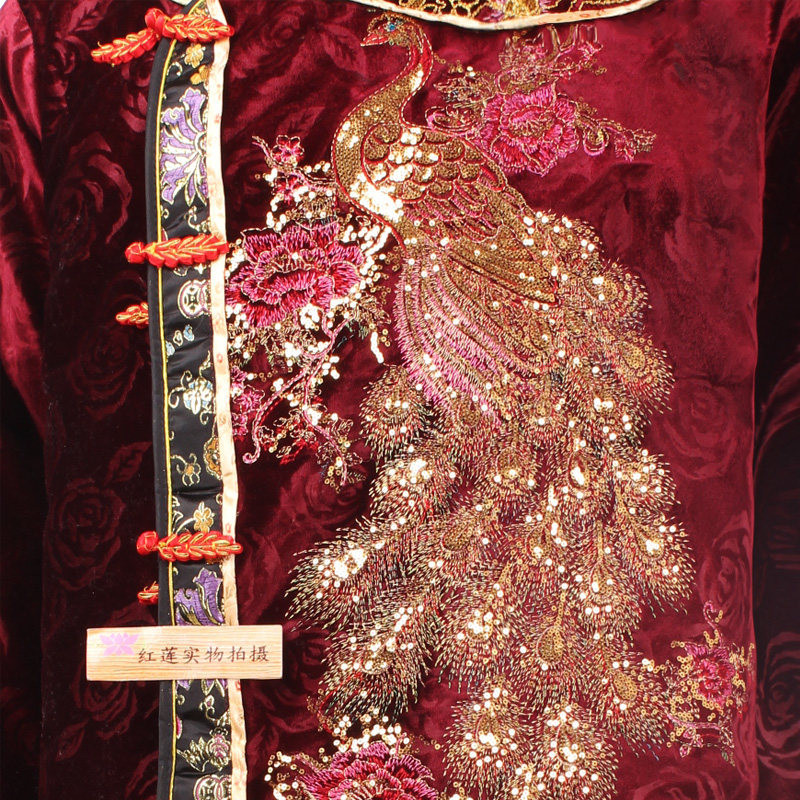Suede coat wardrobes gold silk suede textured gold funeral white matter pure cotton embroidery-Taobao