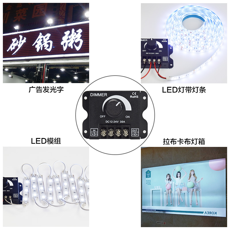 LED dimmer brightness adjustment control DIMMER knob voltage regulator stepless switch DC12V-24V 30A DC
