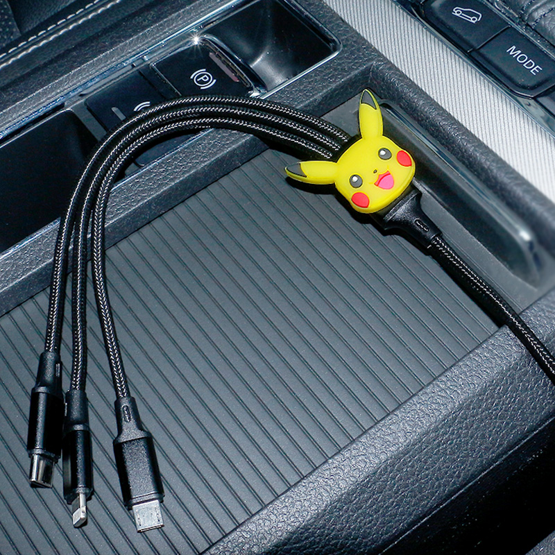 Car charger one drag three fast charge cute cartoon car cigarette lighter power supply USB multi-function data cable