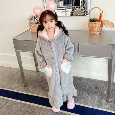 Children's bathrobe coral velvet robes Flannel autumn and winter girls hooded nightdresses Little girl embroidered baby pajamas