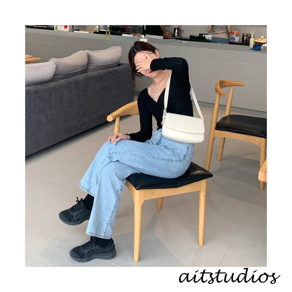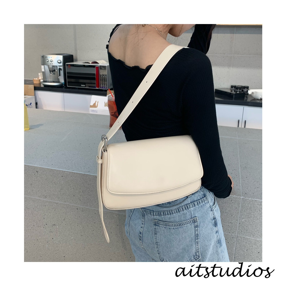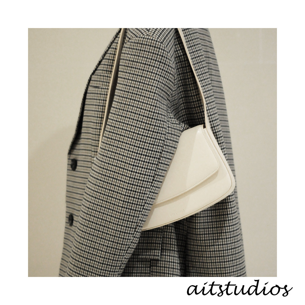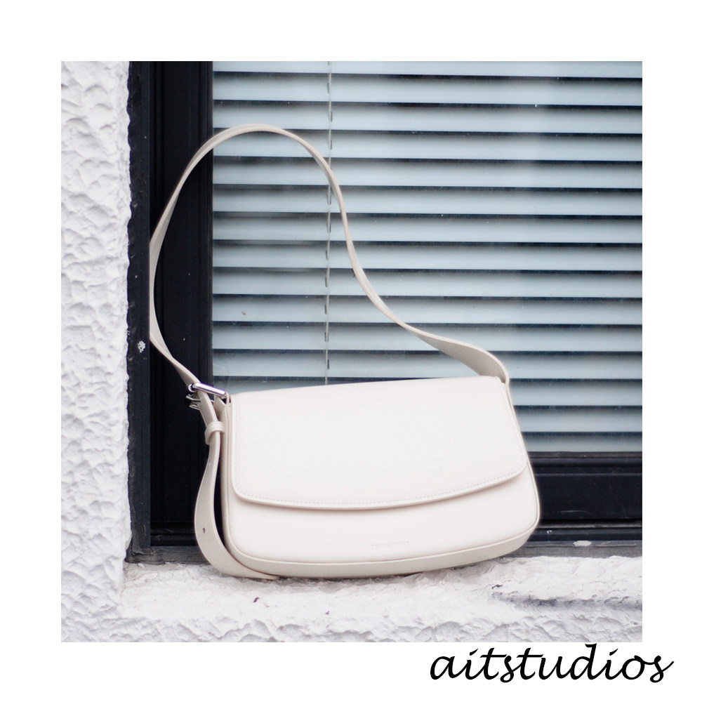 Ait x FOURTWENTY leather leather white Joker ins simple large shoulder baguette bag