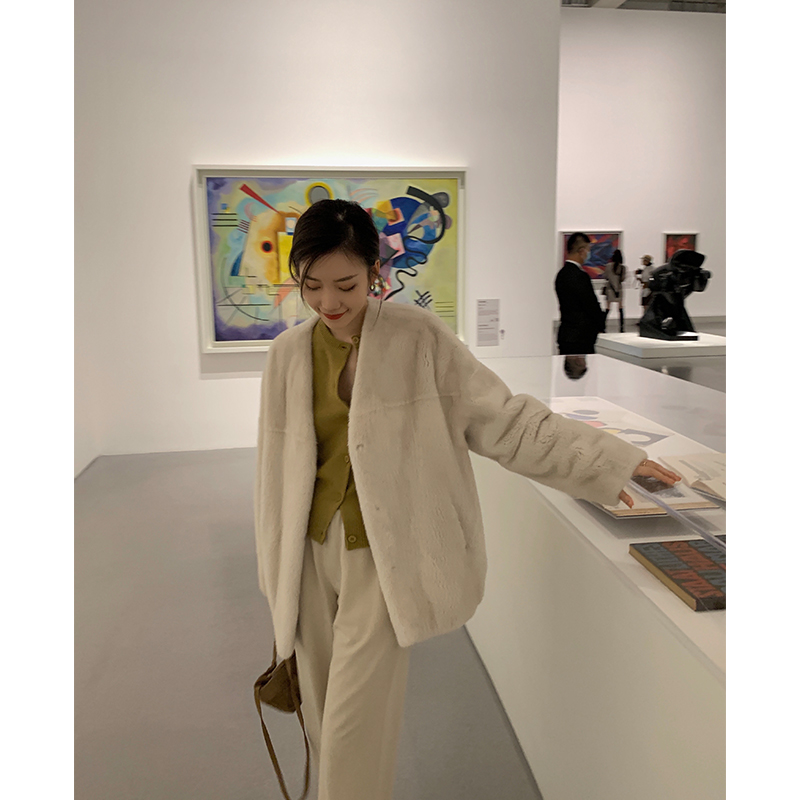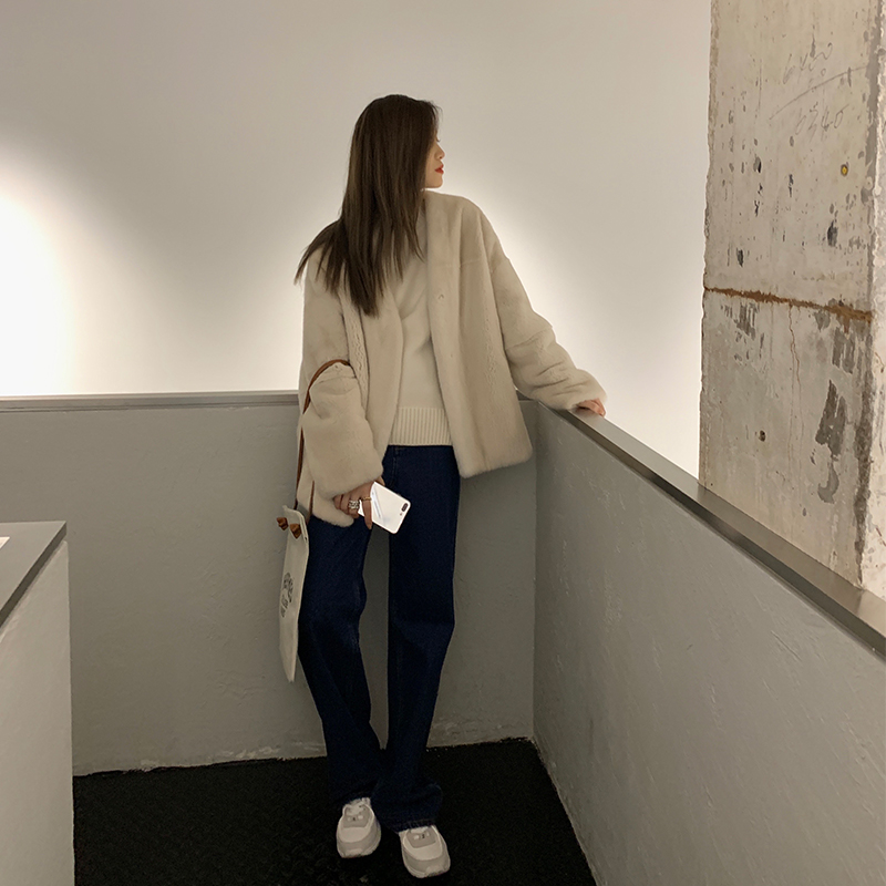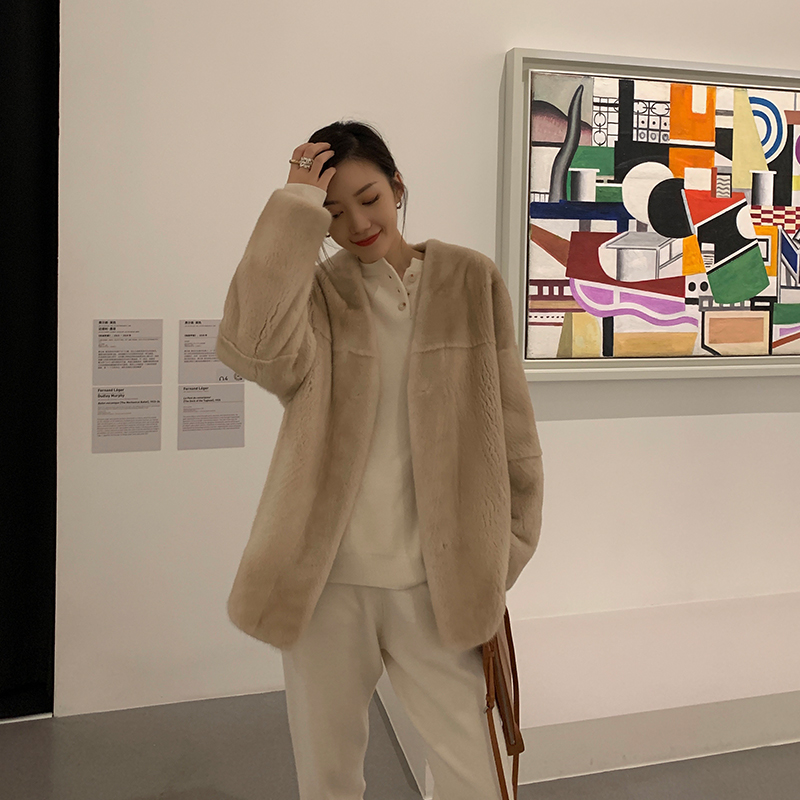 MSBEAST Purple Marker Grade Imported Mink Leather Coat of mink jacket Buffy fur Fur Leather Grass Female Medium Long version V collar