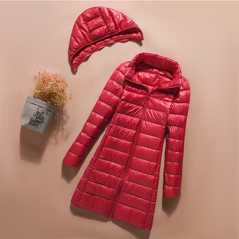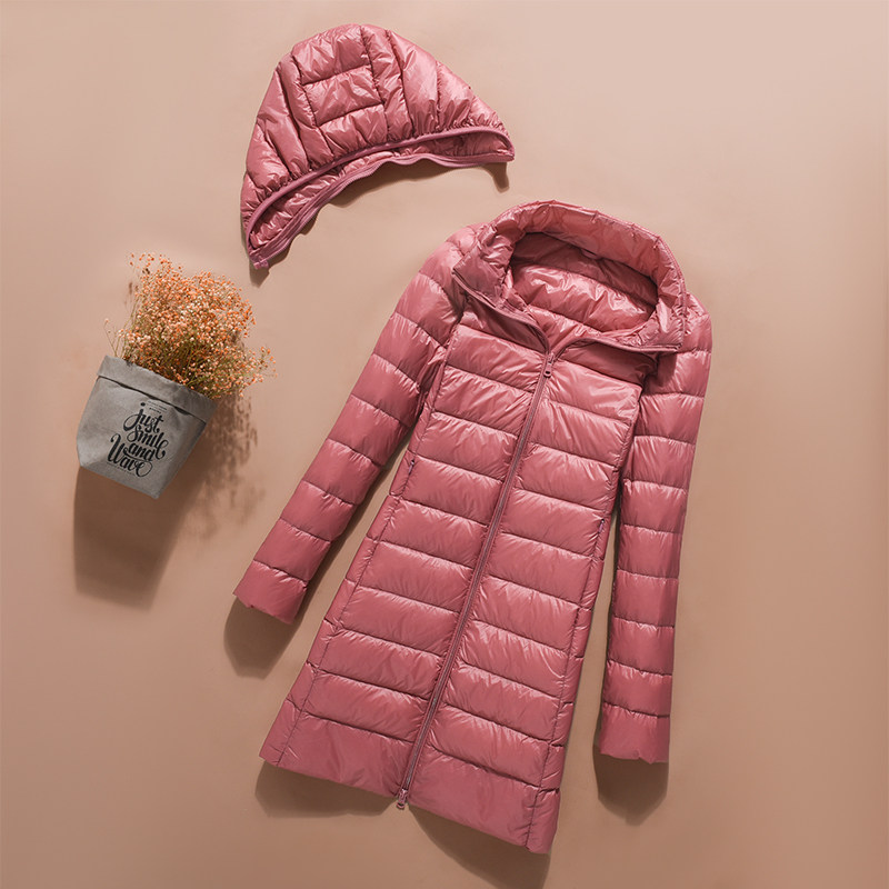 Anti-season sells light down jacket medium and long lady can remove cap to take lightweight cleaning women's fashion coat