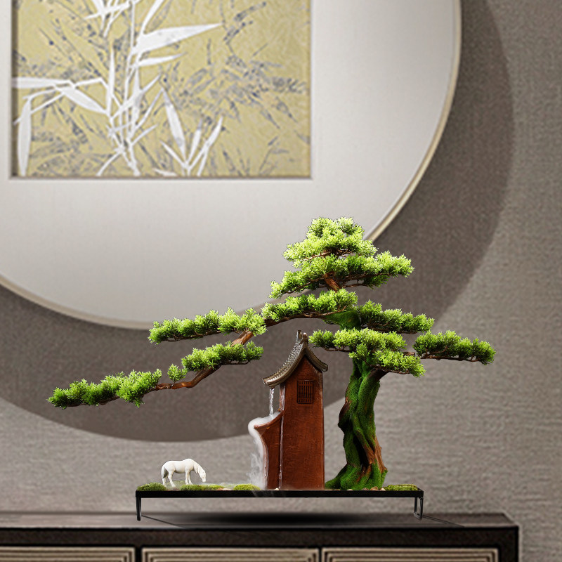 Creative flowing water ornaments to attract wealth and welcome guests pine bonsai micro-landscape living room fountain atomization humidification office decorations