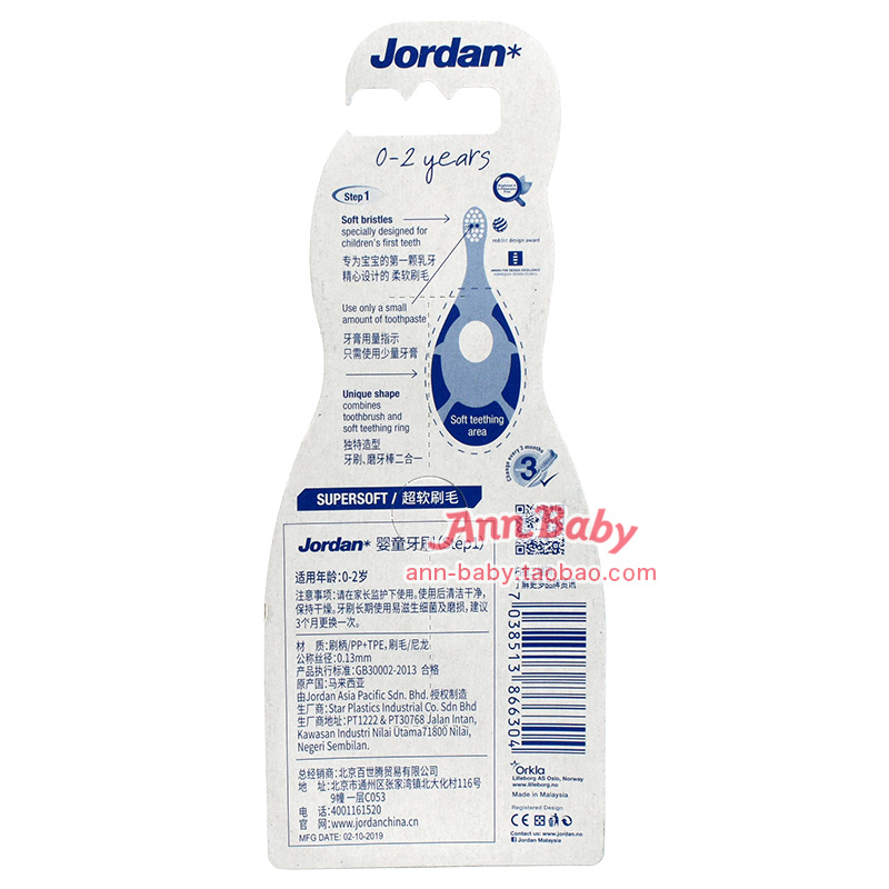 Norwegian Jordan infant child baby soft hair toothbrush 0-1-2-3-6 years old training tooth and tooth tooth toothbrush