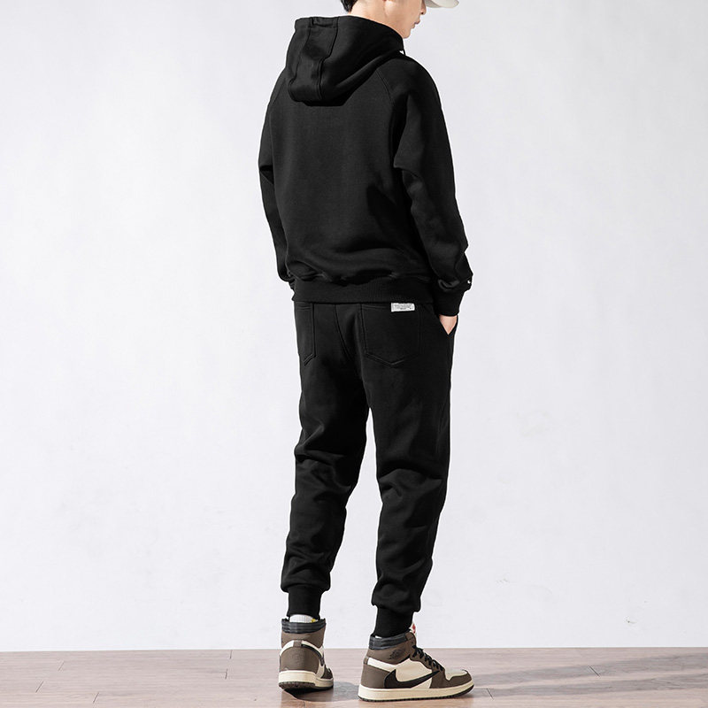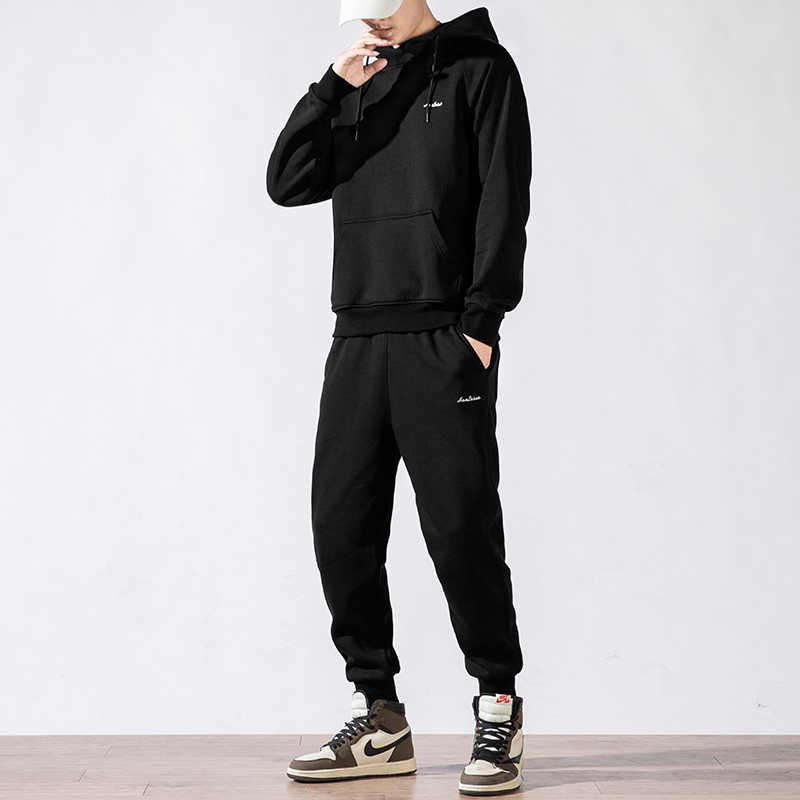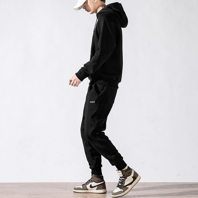 Sweater suit men's autumn and winter new sports hooded pullover trend two-piece plus velvet thick casual jacket