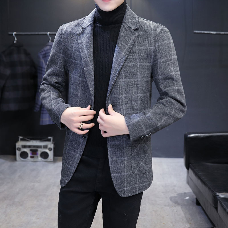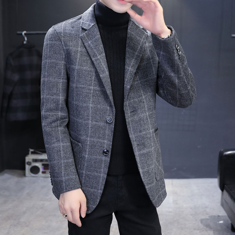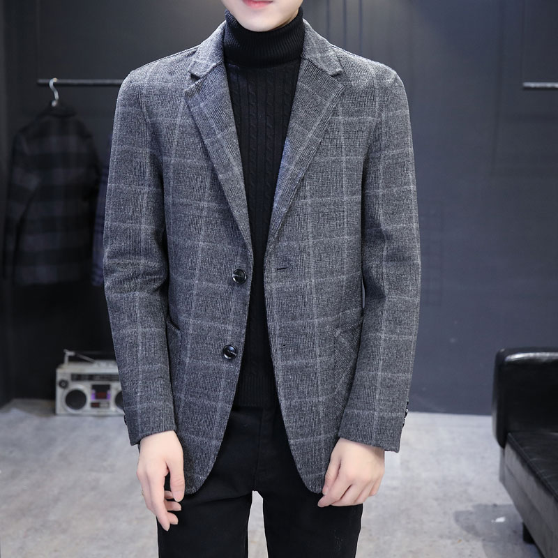 Double-sided woolen casual suit men's business casual plaid suit Korean version trend slim wool woolen coat trend