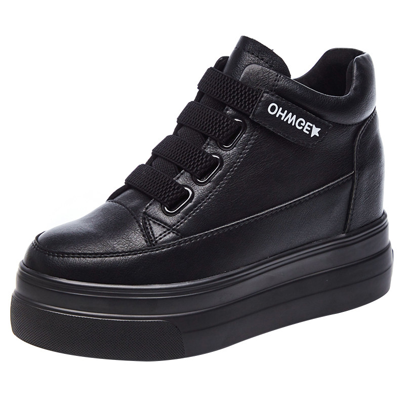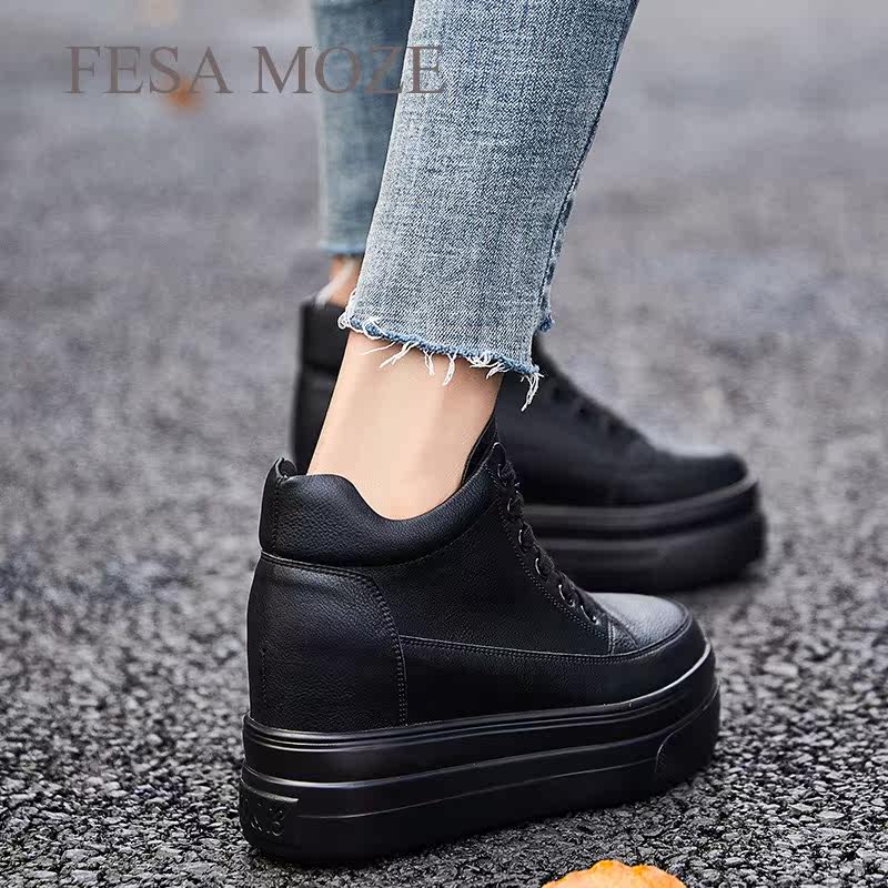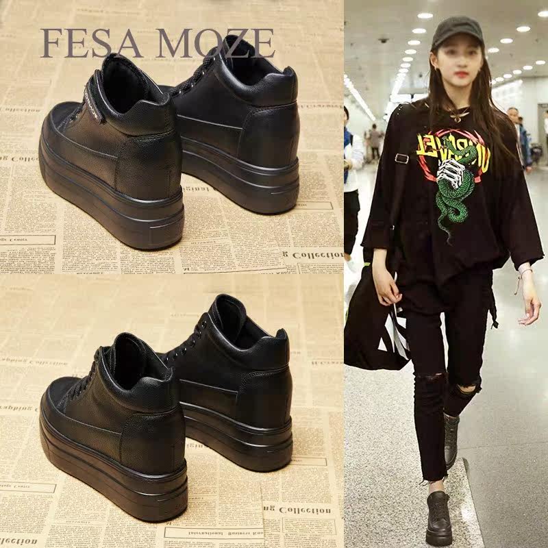 Hong Kong Thick Bottom Pine Pastry Shoes Women 2023 Spring New 100 Hitch Black Small Sub Inside Heightening Board Shoes Genuine Leather Women Shoes-Taobao