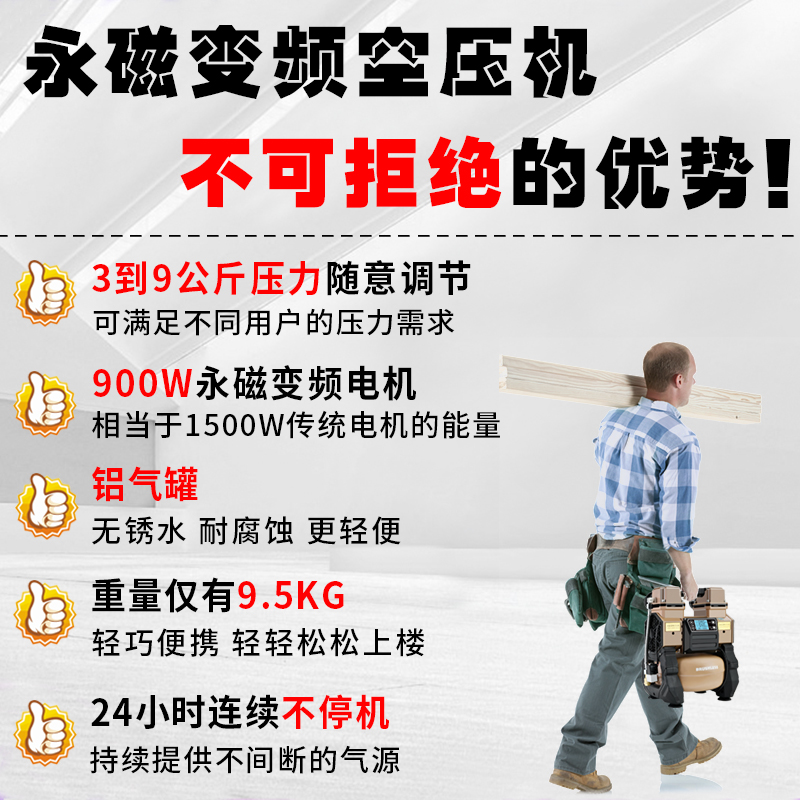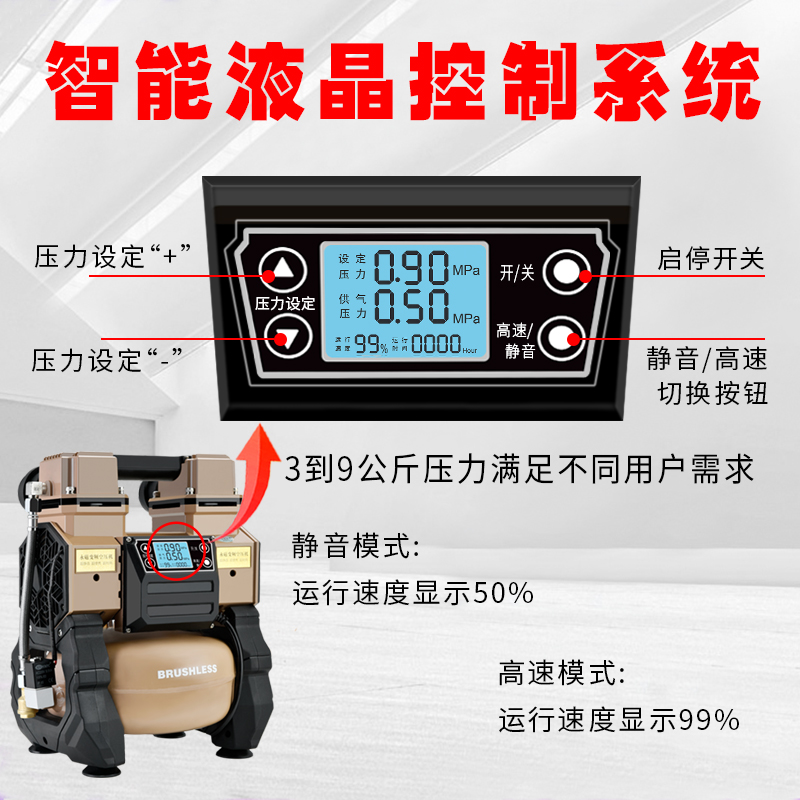 Iron Becomes Permanent Magnet Frequency Conversion Air Compressor Portable Small Oil-free Silent Woodwork Spray Pump Industrial Grade Spray High Pressure