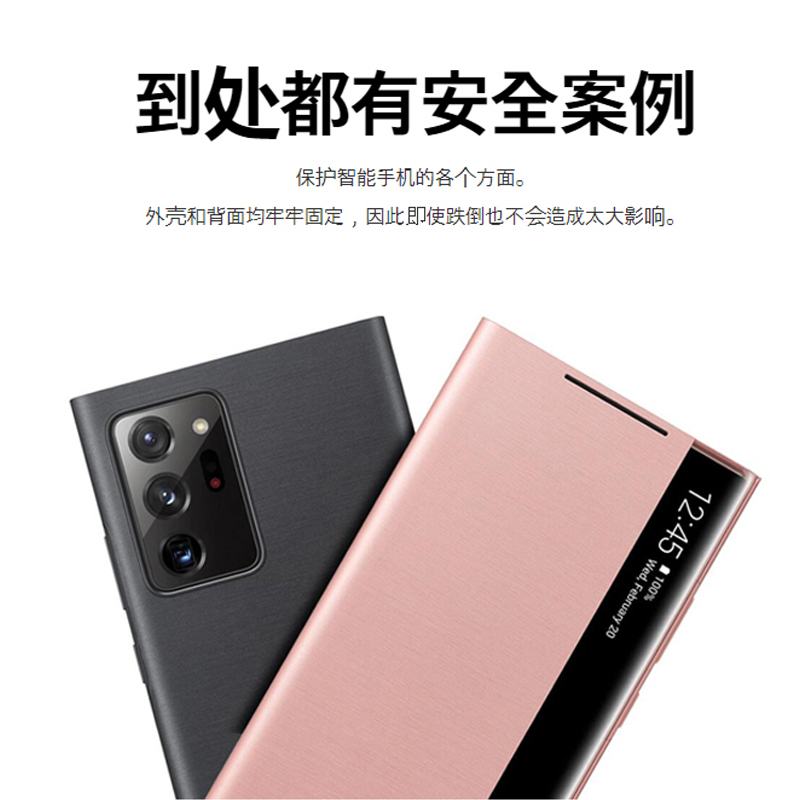 Applicable to Samsung Note20ultra mobile phone case smart flip-free skin cover note20 fur leather creative personality mobile phone case smart LED tide Samsung Note20 ultra-thin men and women