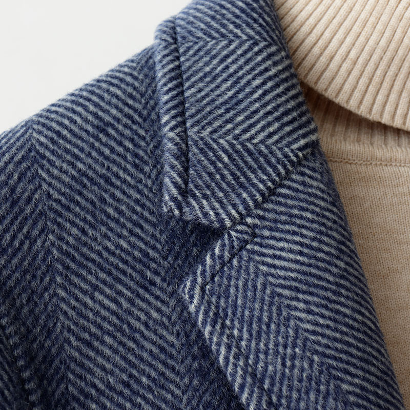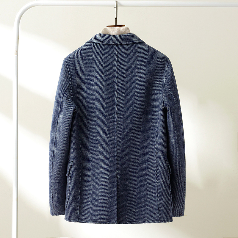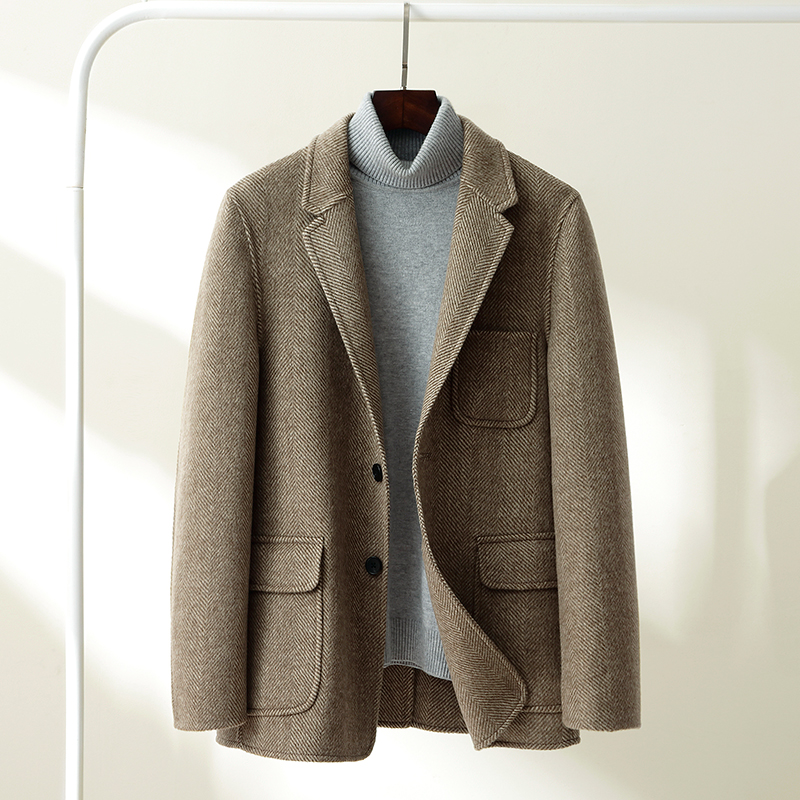 2021 autumn and winter herringbone tattoo bifacial wool, great coat men's suit Korean version no cashmere suits jacket loose trend