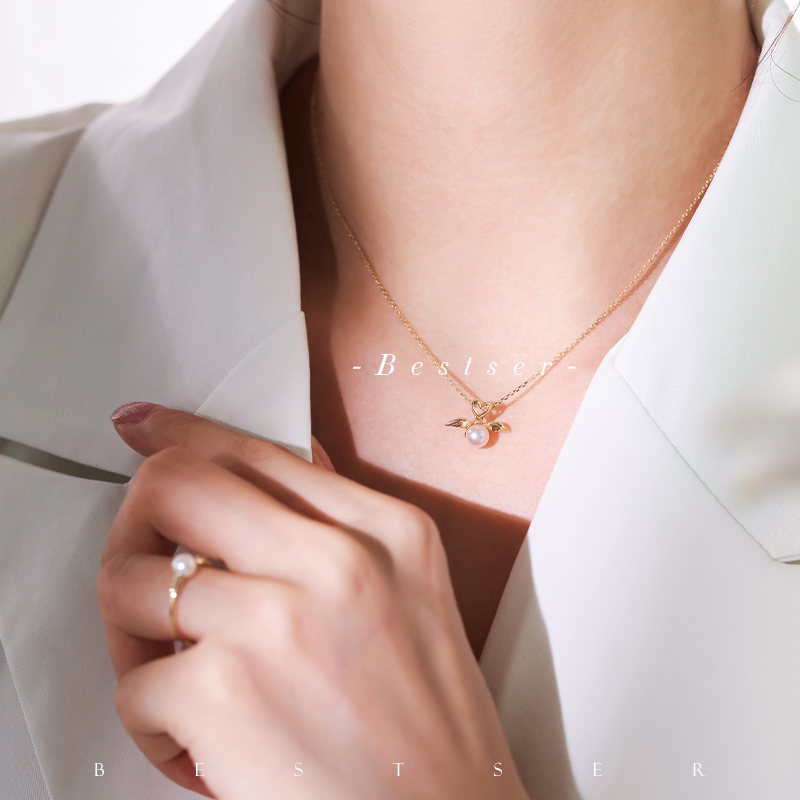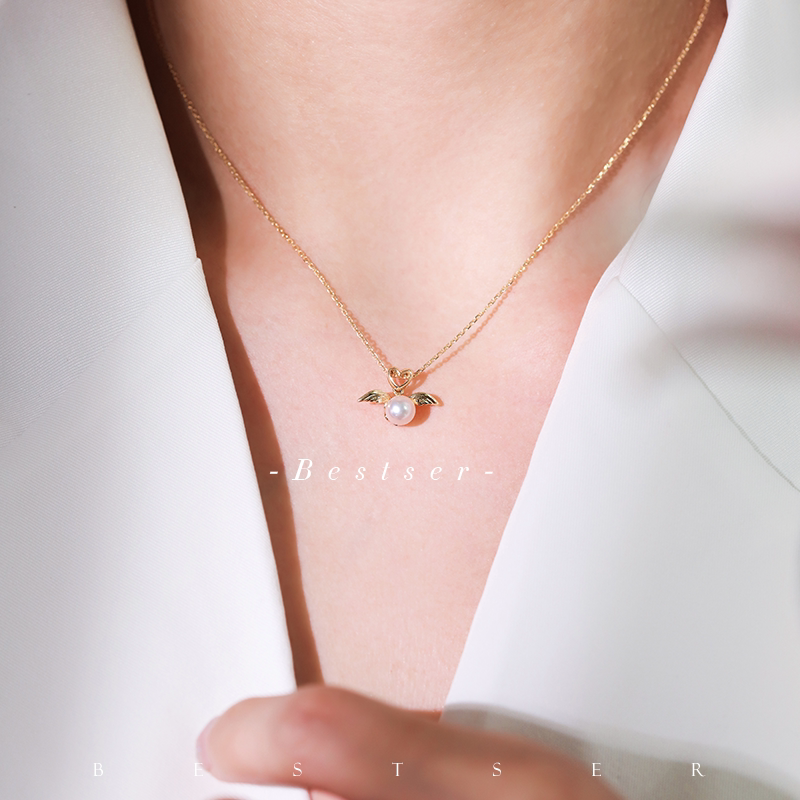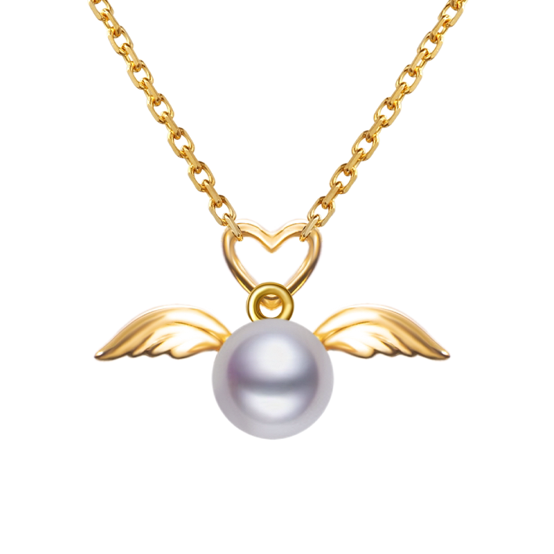 Bison Bestser (Cupid) 18K Gold Inlaid AKOYA Seawater Pearl Pendant Necklace Little Angel