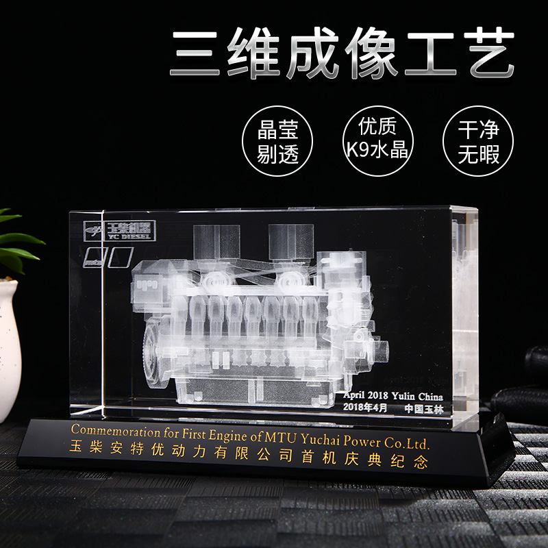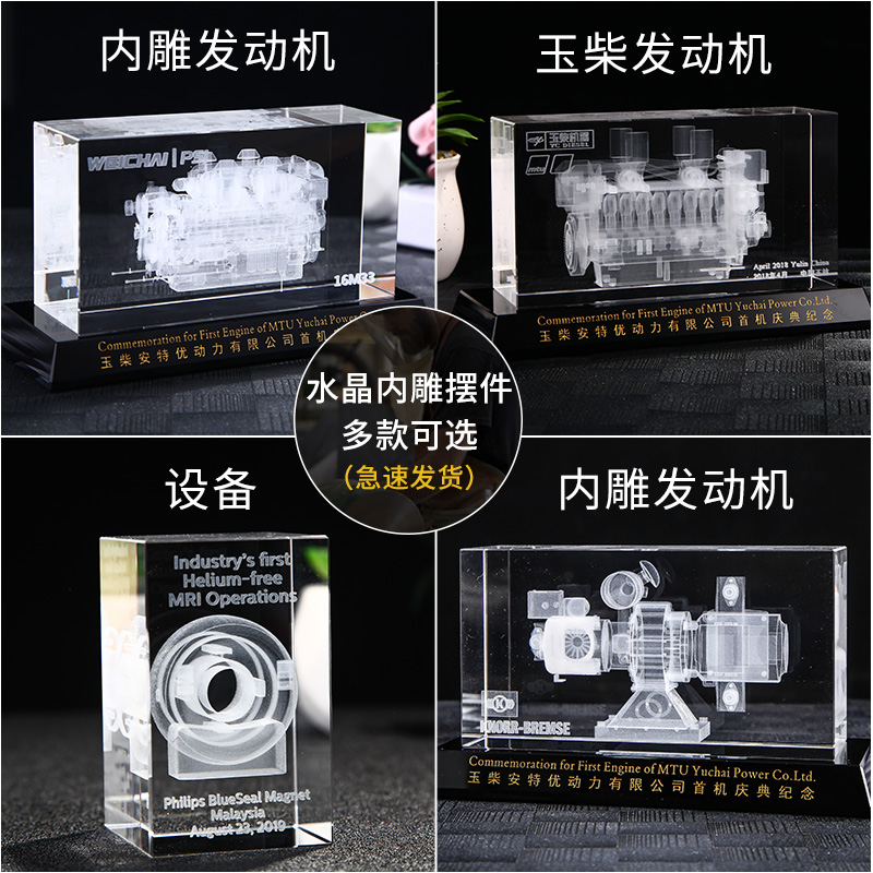 Engine model mechanical ornaments crystal custom 3D laser engraving machine parts gear handicrafts souvenirs