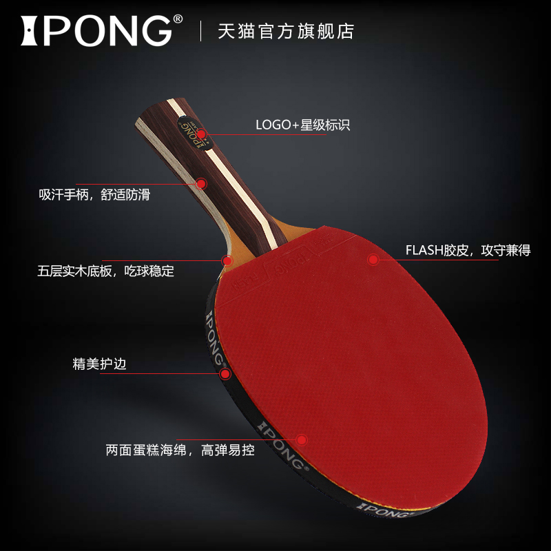 U.S. ipong Table Tennis Racket Horizontal Racket Single Racket Four Stars 1 Beginner Student Children Table Tennis Finished Racket
