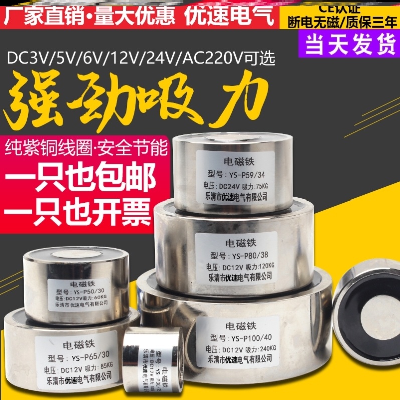 Electromagnet 24v strong small DC 12v miniature electromagnet suction cup strong 220v industrial iron suction round