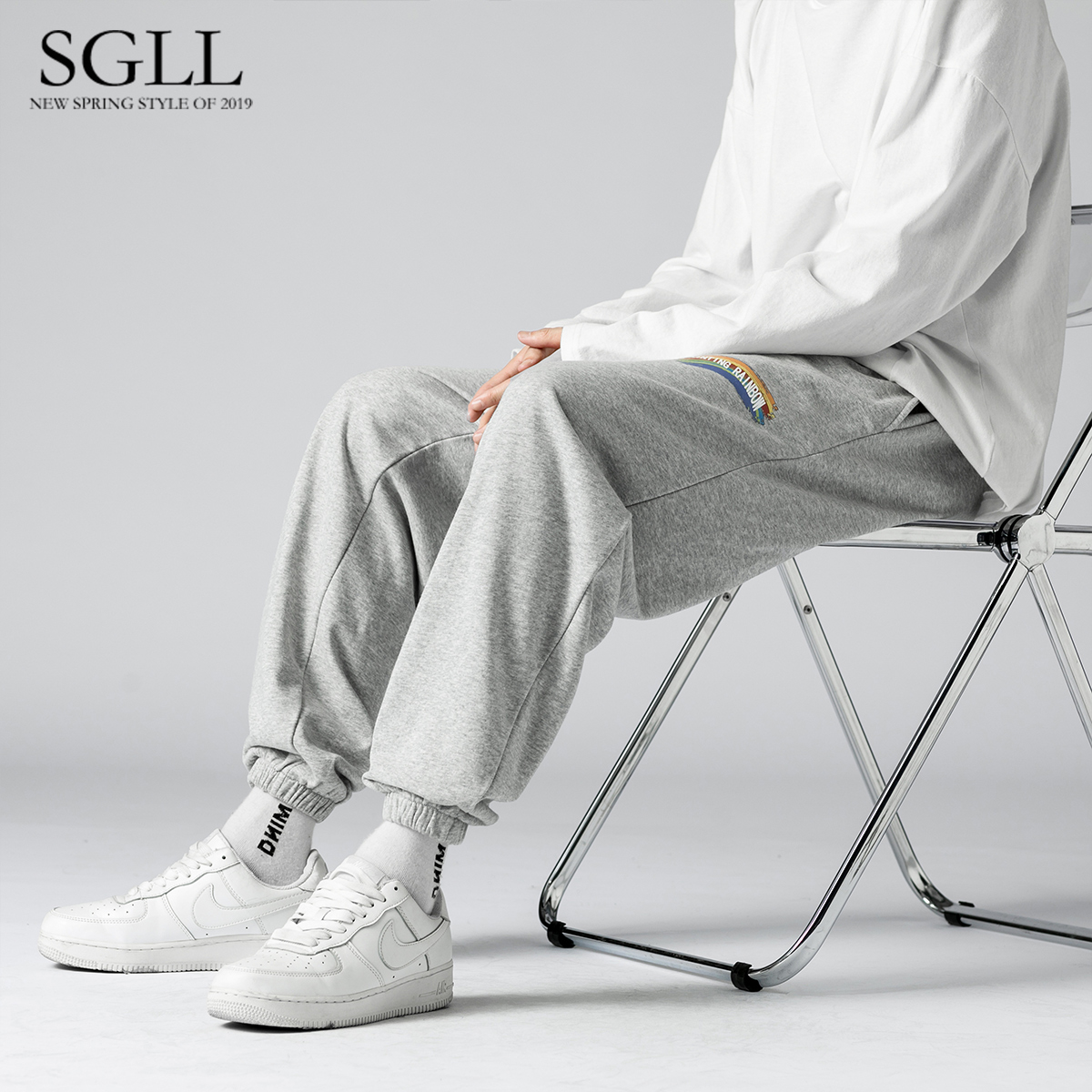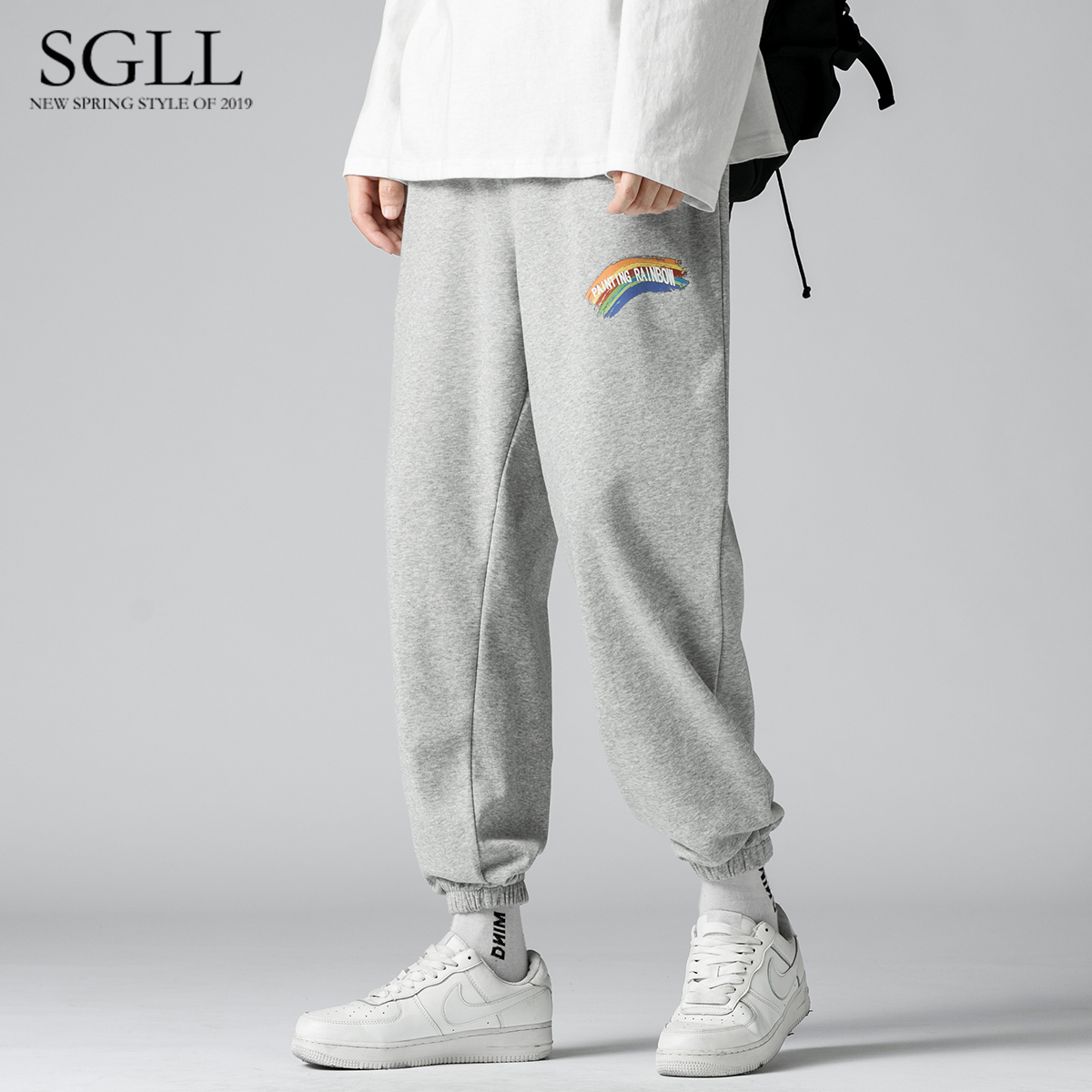 Pants men's autumn new straight loose casual pants trend Hong Kong style all-match sweat pants rainbow beam sports pants