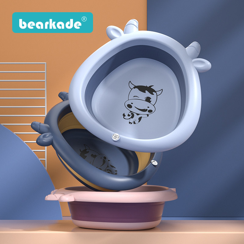 Newborn Baby Wash Basin Portable 2 Folds Washbasin Wash Fart Baby Basin Cartoon Cute 3 clothes