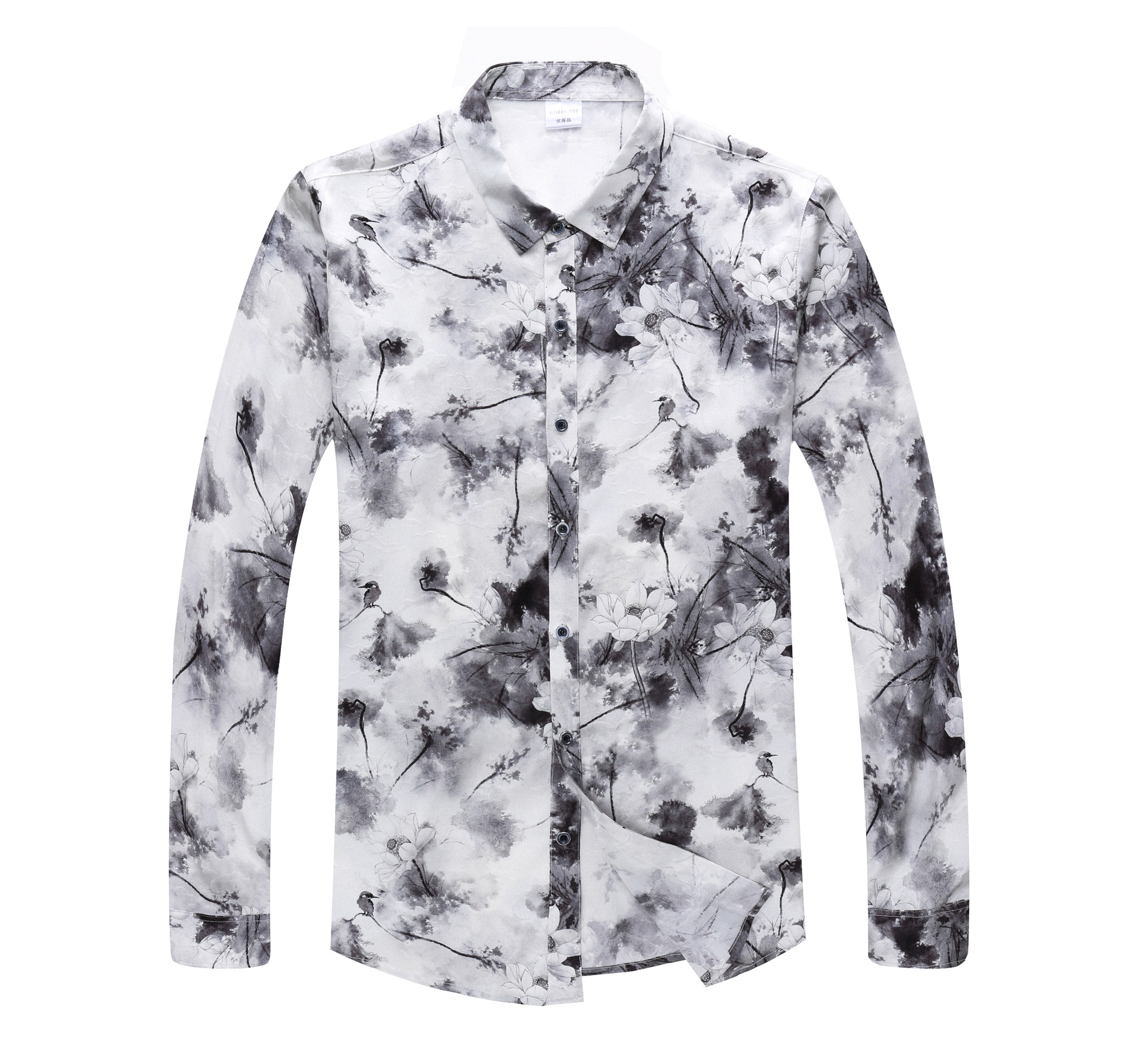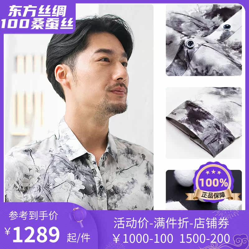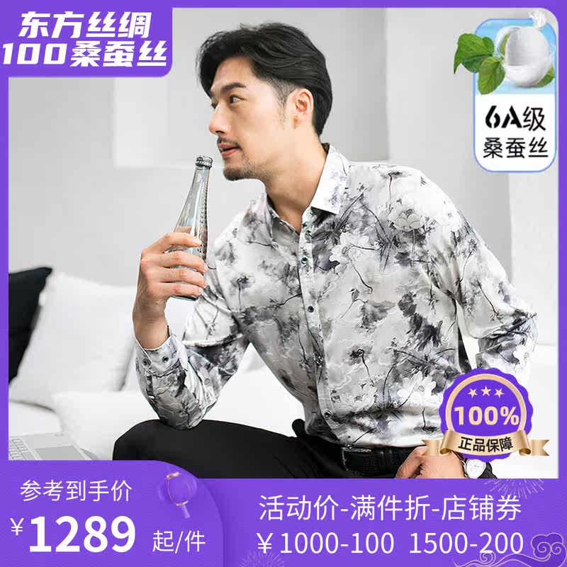 Luxurious Silk Men upscale Heavy Genuine Silk Long Sleeve Shirt Male Fashion China Wind Middle-aged Business Silk Shirt
