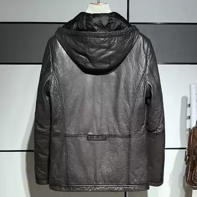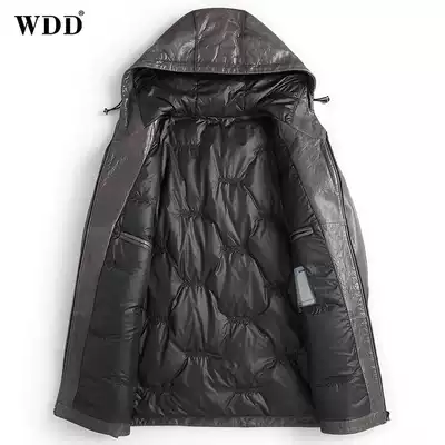 Leather leather men's hooded short slim jacket 2020 winter new Haining sheepskin down jacket jacket tide