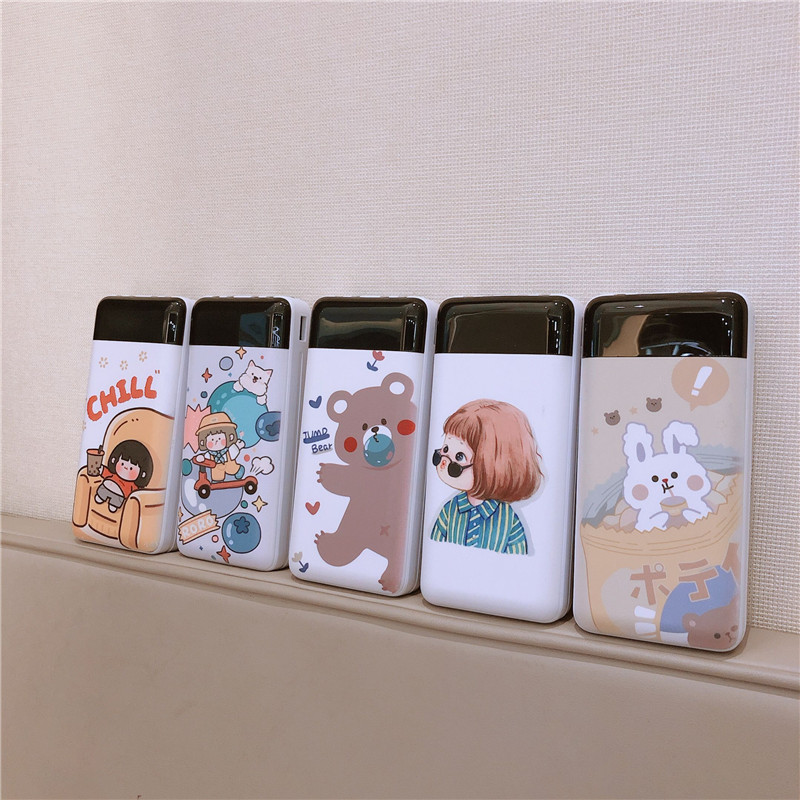 Cute Bring Your Own Line Mobile Charging Large Capacity 20000 MAh Four All-in-one Ultra-thin Portable Fast Charging Action Power