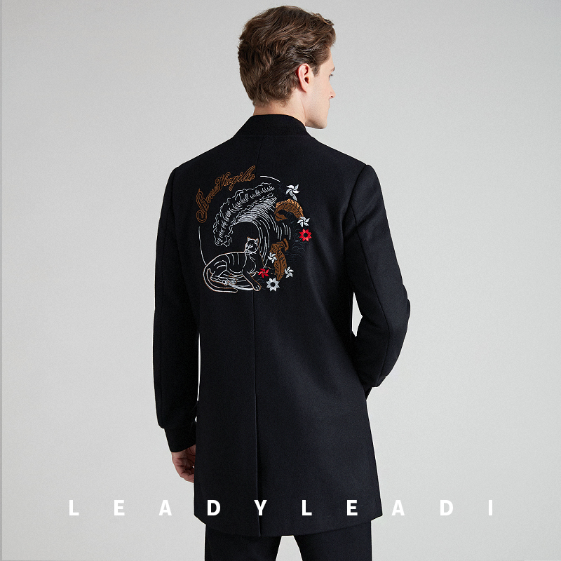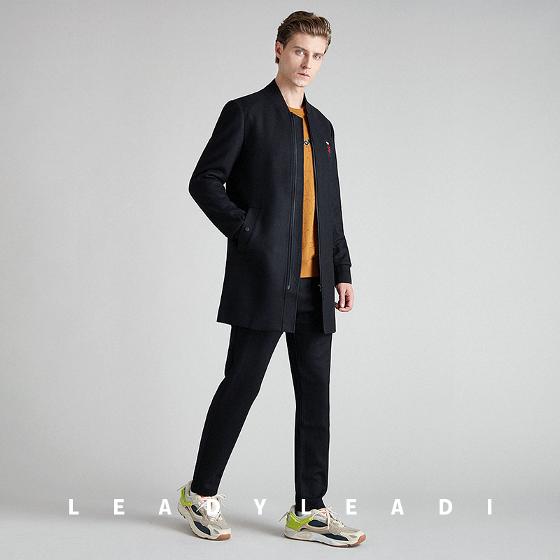 Liqi men's wool coat 2020 winter new black wool coat coat Wool coat men's medium and long version