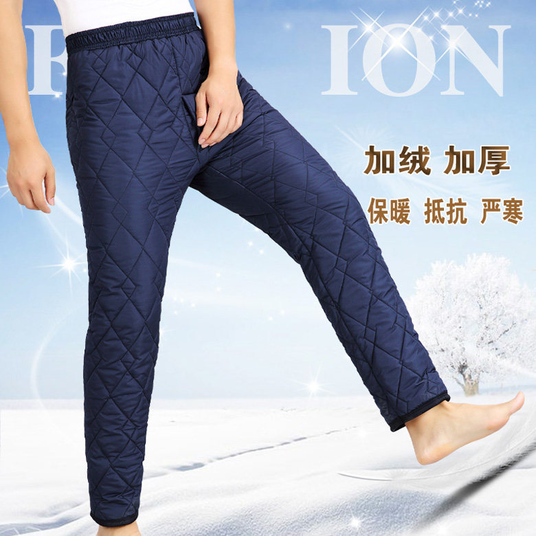 Winter Pants Men's Glint Thickened Dad Cotton Pants Men's Northeast Middle Aged Warm Pants Wear Big Size Pants Man