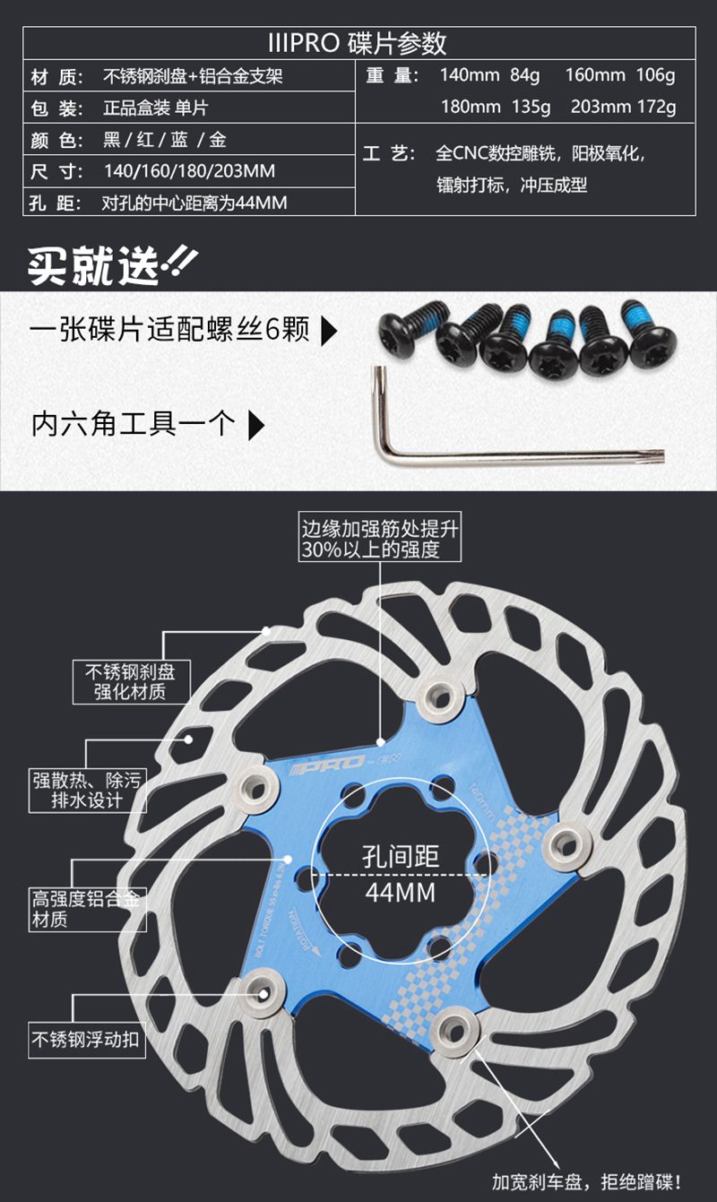 IIIPRO road ultra-light mountain bike floating disc 160mm180 six-pin disc 203 brake disc 140
