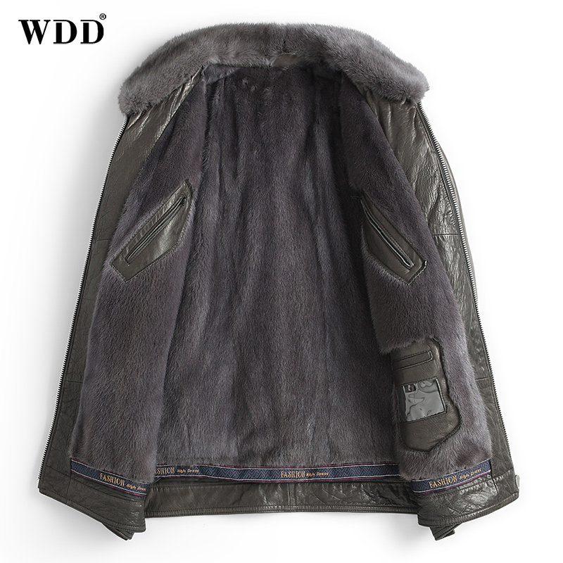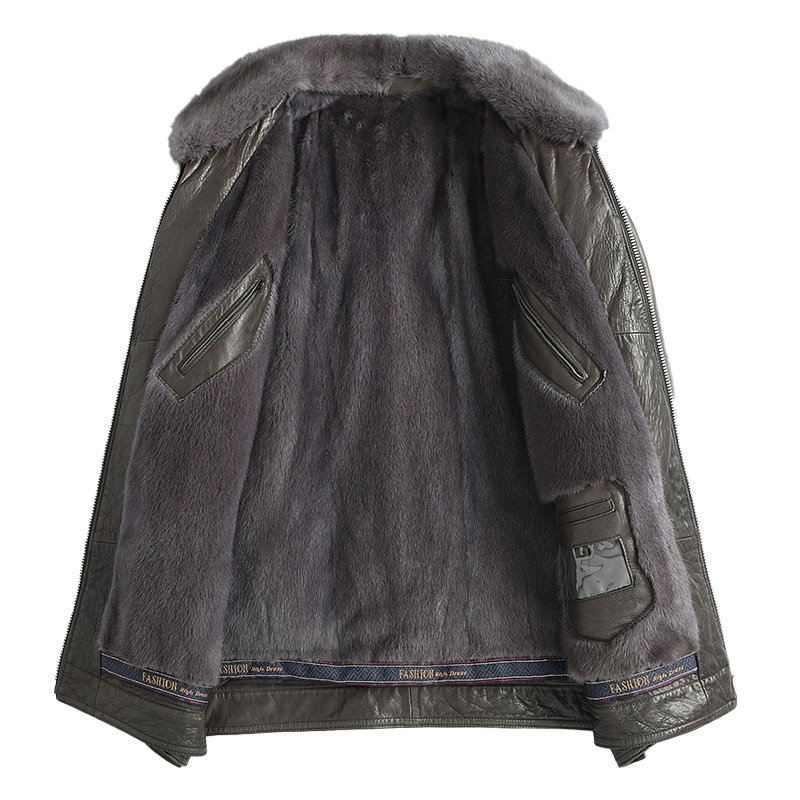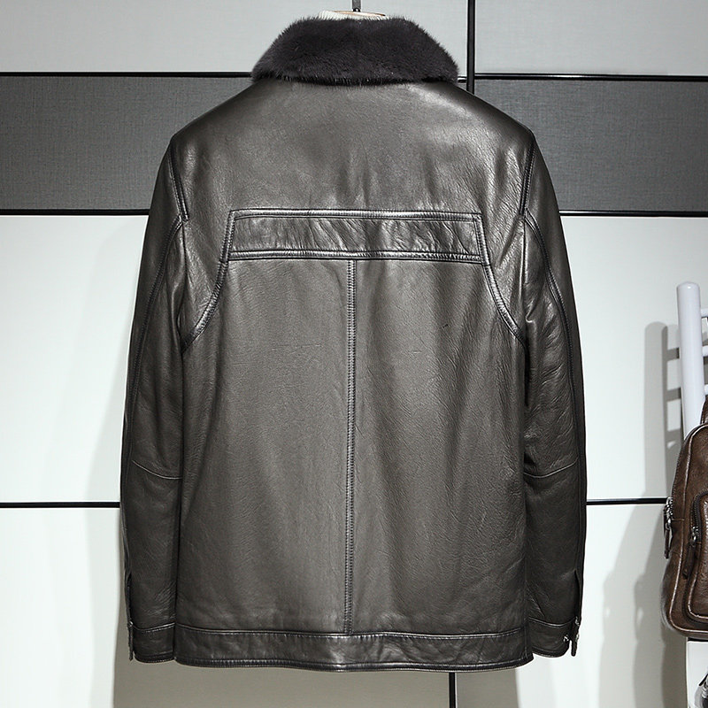 Real leather fur coat male ferret mink liner goat leather jacket turd collar short henning leather grass fur integrated coat
