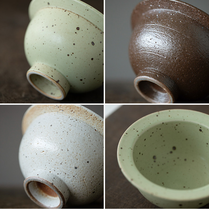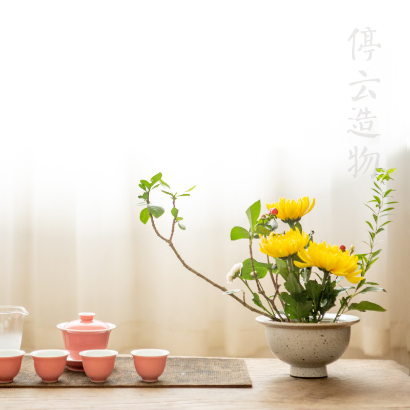 Handmade coarse pottery retro high foot water plate flower plate Zen will wild glaze bowl-shaped flower vessel Chinese flower art Ohara flow