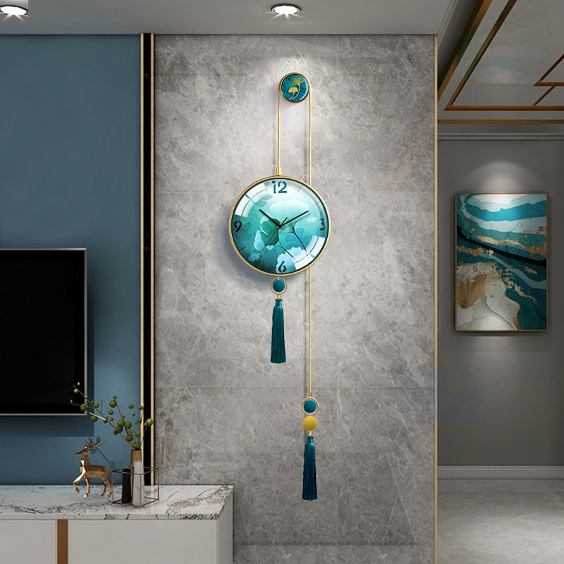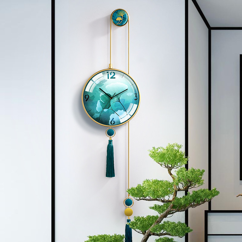 Atmospheric silent wall clock living room new Chinese household clock table Fashion creative light luxury modern simple decoration hanging wall