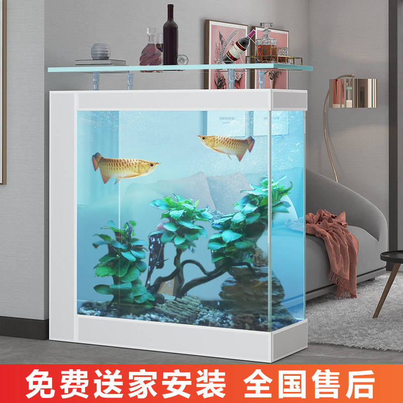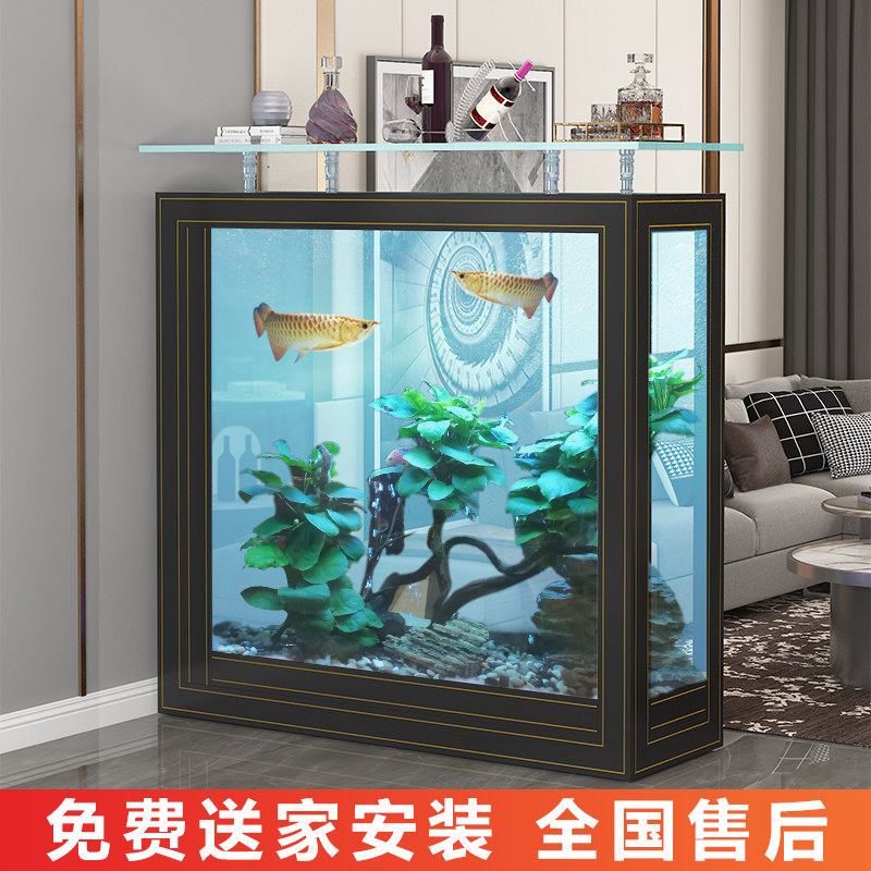 Gold fish tank living room large and medium floor home minimalist modern aquarium embedded in screen-free water high-end fish tank-Taobao
