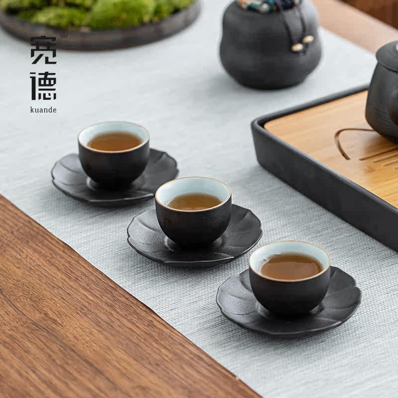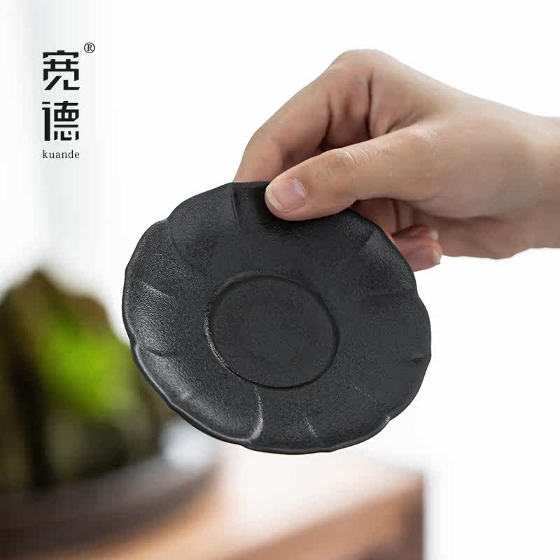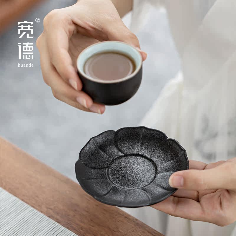 Matzer Black Pottery Bloom Lotus Cup Cushion Cups Heat Insulation Mat Home Creative Tea Cup Mat Day Style Tea Tea Tract Accessories