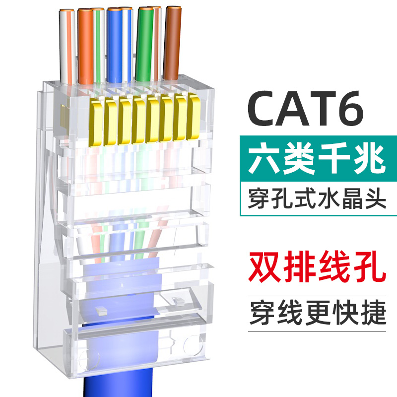 Engineering Class Six type of perforated crystal head 6 through hole type crystal head rj45 cat6 one thousand trillion Internet connection head