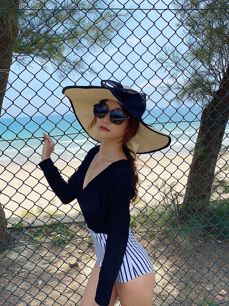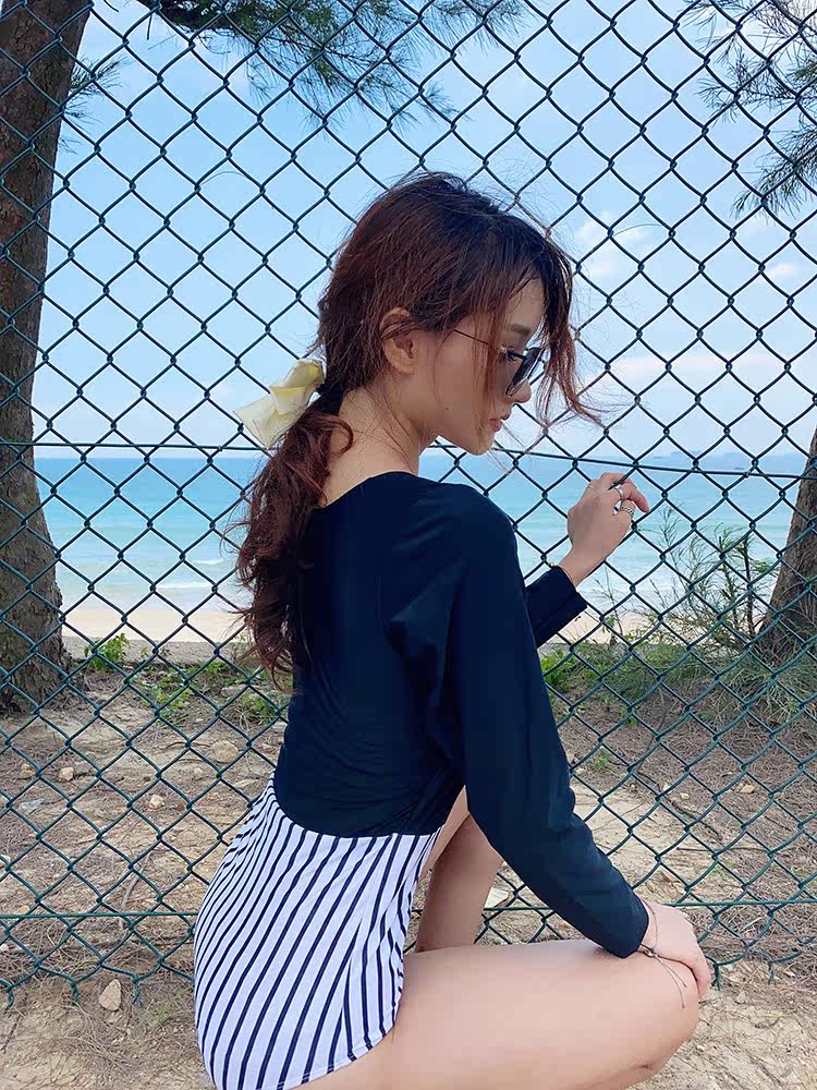 Swimsuit one-piece long sleeve color ins net red steel support gathered to cover the belly to show thin sexy bikini hot spring swimsuit