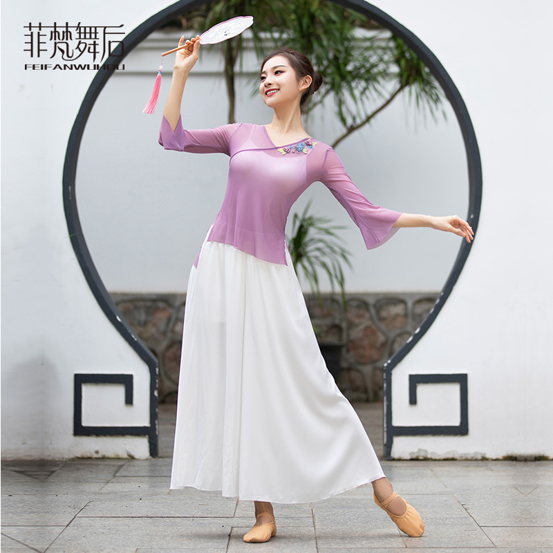 Chinese Classical Dance Body Rhyme Dresses Chinese Women's Table Performance Clothing Embroidered Flowers Blouses Horn Broadlegged Pants