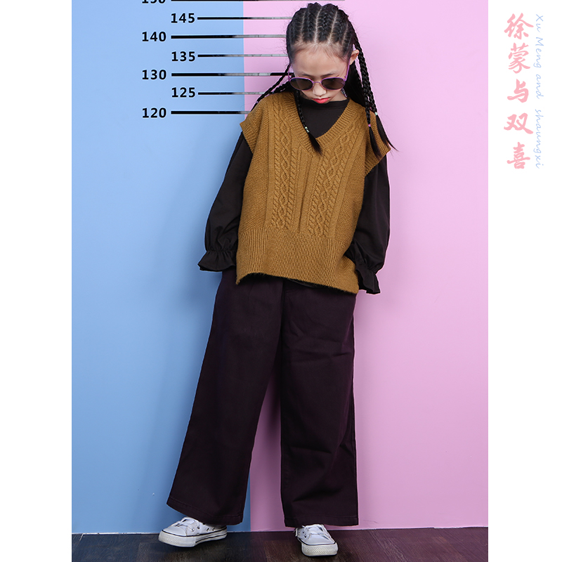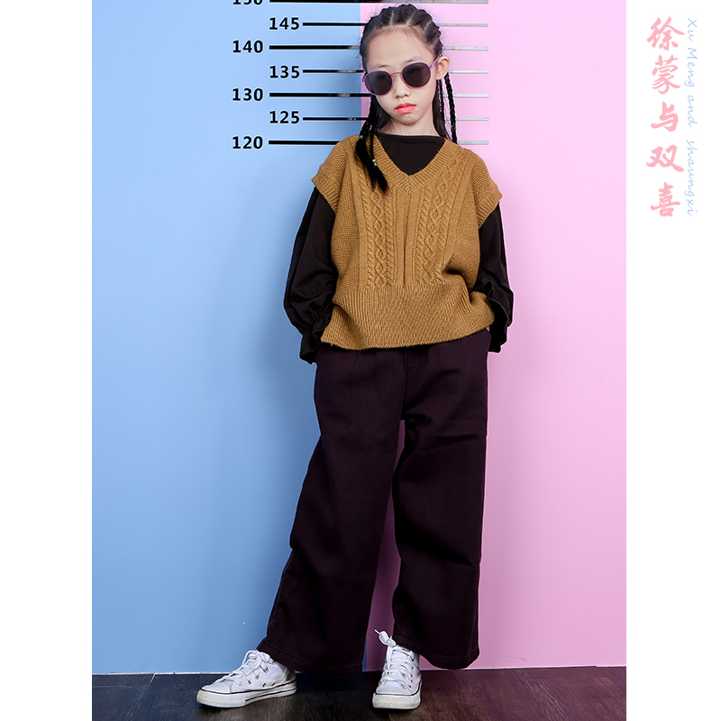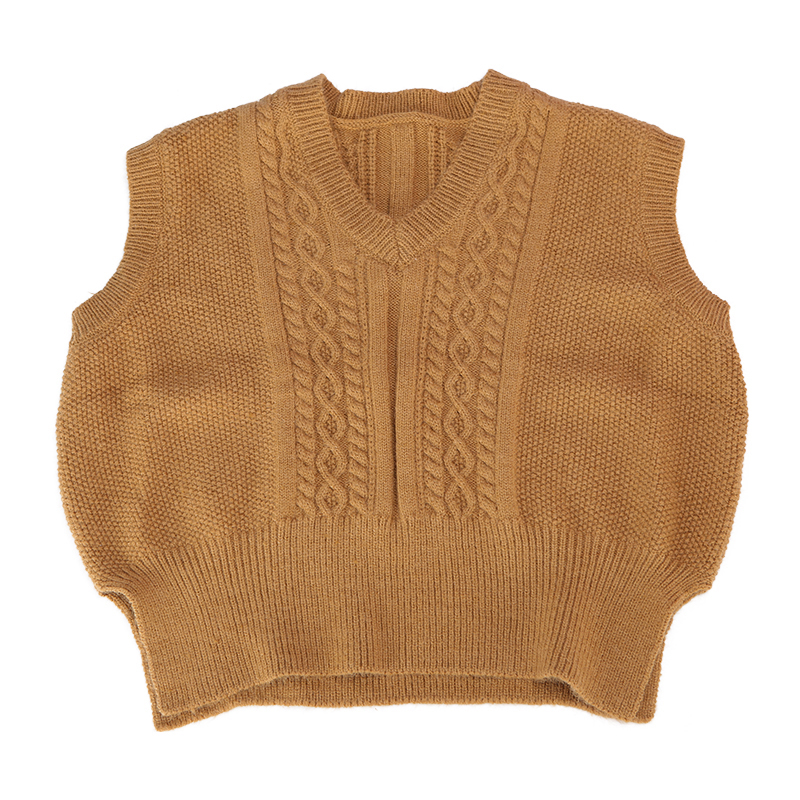 New girls spring and autumn brown knit waistcoat, small and small children Korean version baby coat, thickened warm sweater