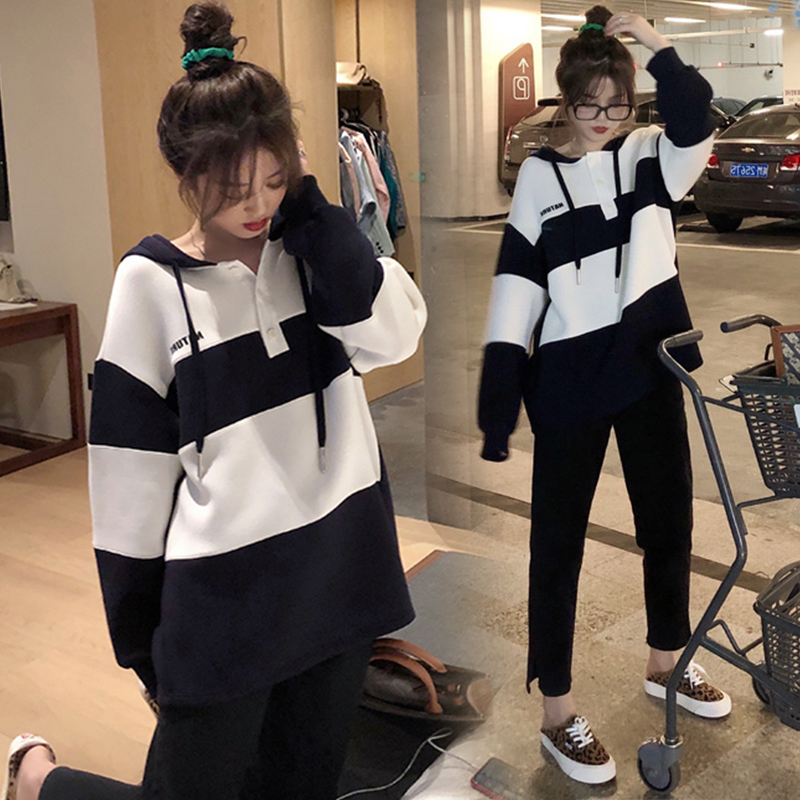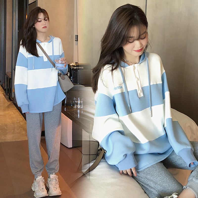 Sky Blue and White Striped Sweater Navy Blue Striped Casual Top Black Slit Pants Navy Blue and White Striped Sweater Sky Blue and White Striped Sweater Grey Sweatpants