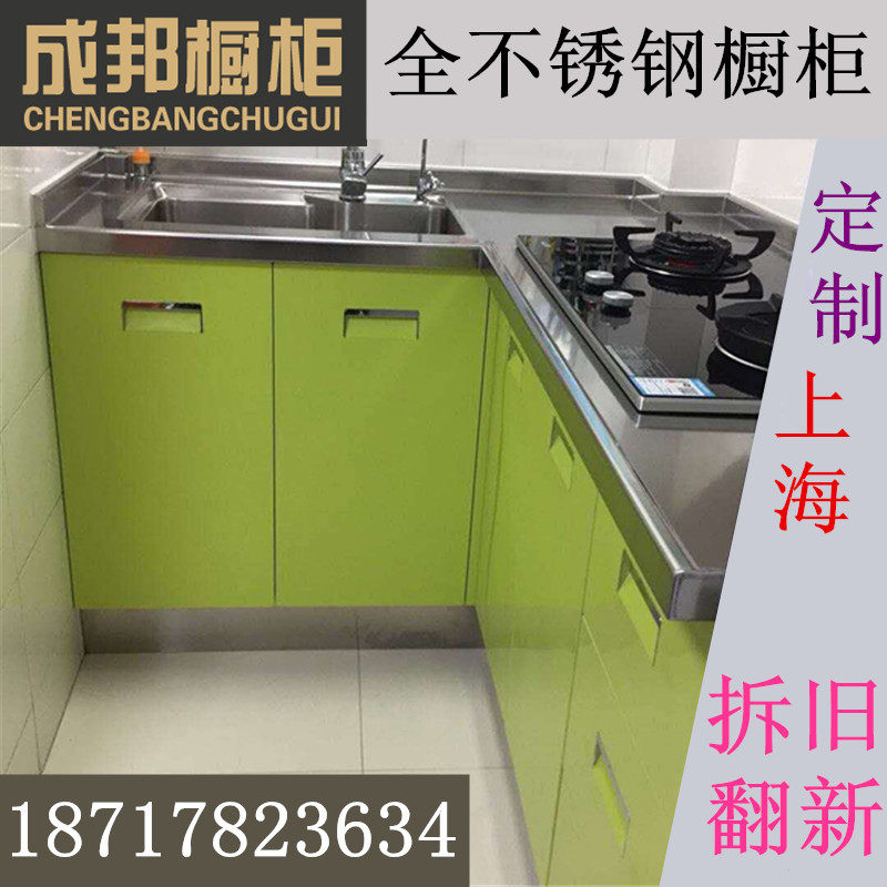 Shanghai thickened authentic 304 stainless steel countertop custom-made modern simple household overall cabinet door panel custom kitchen