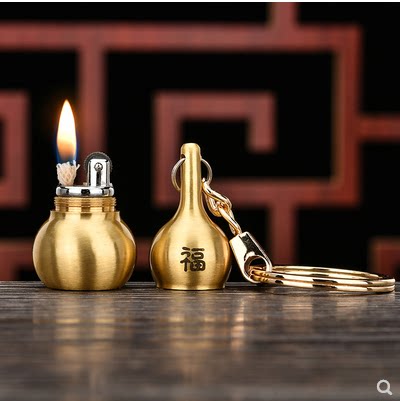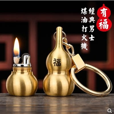 Waterproof Kerosene Lighter Creative Personality Small Mini Gourd Key Button Pendant Copper Lighter Lettering Wave Man