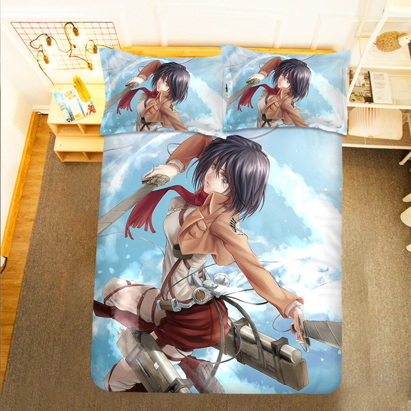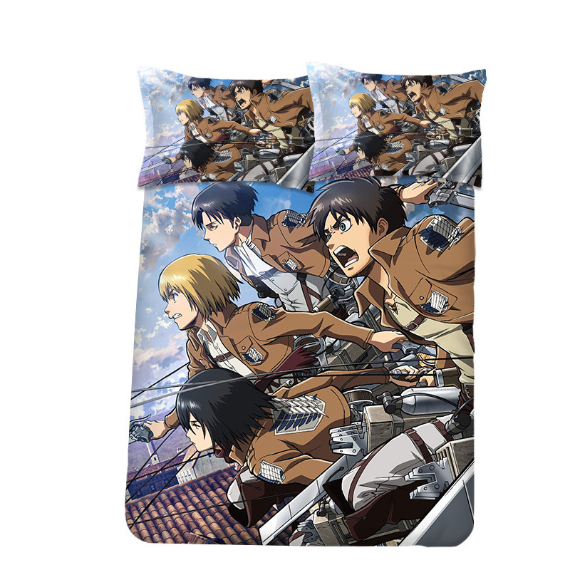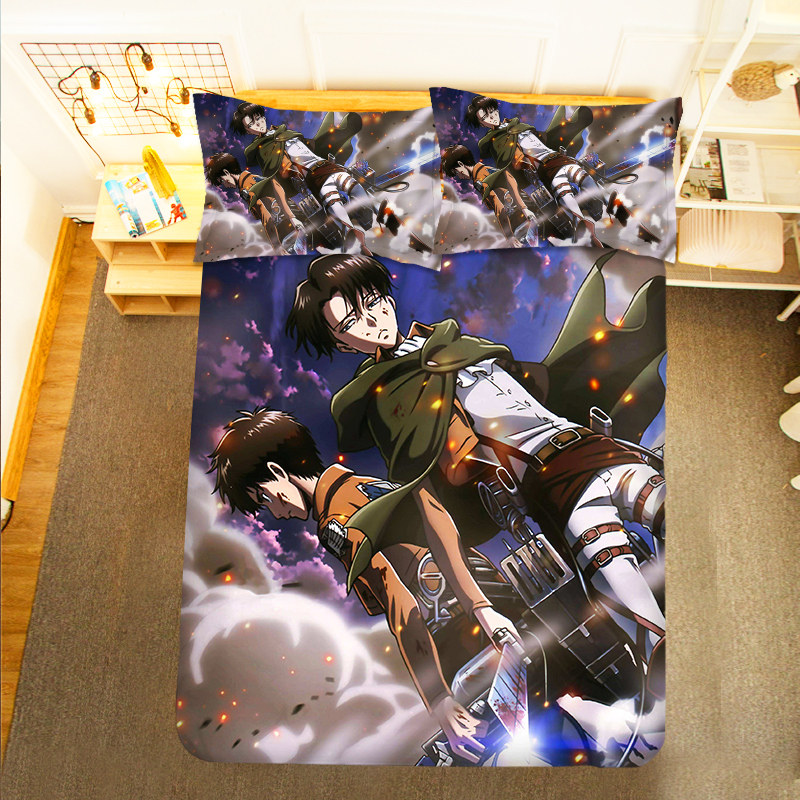Anime Attack on Titan Surrounding Levi's Captain Bed Sheet Quilt Mikasa Ackerman Student Bed Three-piece Set