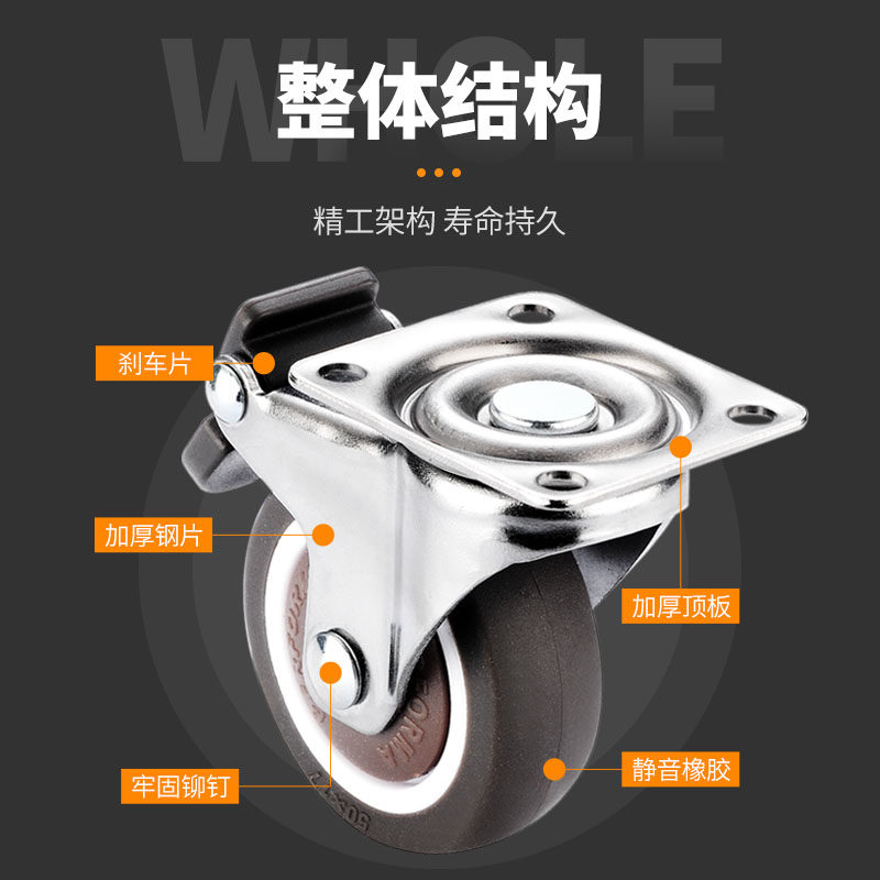 1 inch furniture pulley Steering wheel roller Rubber wheel Baby bed wheel accessories Small universal wheel Silent 2 inch caster