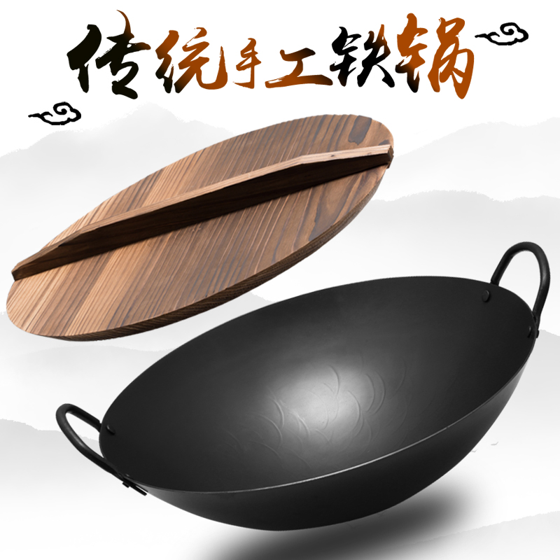 36CM double ear wok (single pot no giveaways) (boiled) 38CM double ear wok (single pot no giveaways) (boiled) 40CM double ear wok (single pot no giveaways) (boiled) 45CM double ear wok (single pot no giveaways) (boiled) 36CM double ear wok (free pot lid stir-frying spoon and wooden spatula) (boiled)